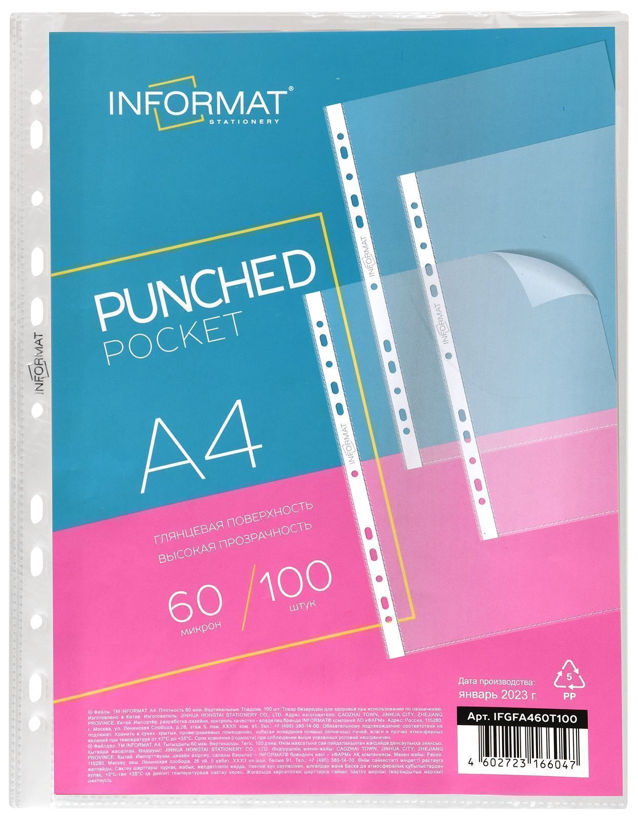 Файлы-вкладыши формата А4 из плотной прозрачной полипропиленовой пленки с гладкой фактурой, толщиной 60 мкм. Предназначены для хранения и защиты документов. Каждый файл-вкладыш вмещает около 50 листов бумаги стандартной плотности. Боковая универсальная перфорация (4 отверстия), подходит для разных типов скоросшивателей.