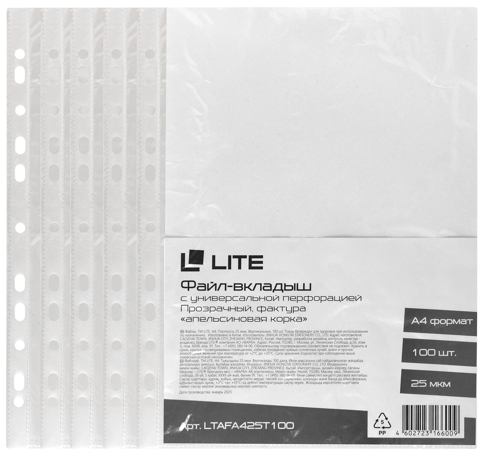Файлы-вкладыши формата А4 с рельефной структурой полипропиленовой пленки толщиной 25 мкм. Предназначены для хранения и защиты документов. Каждый файл-вкладыш вмещает около 40 листов бумаги стандартной плотности. Боковая универсальная перфорация подходит для разных типов скоросшивателей.