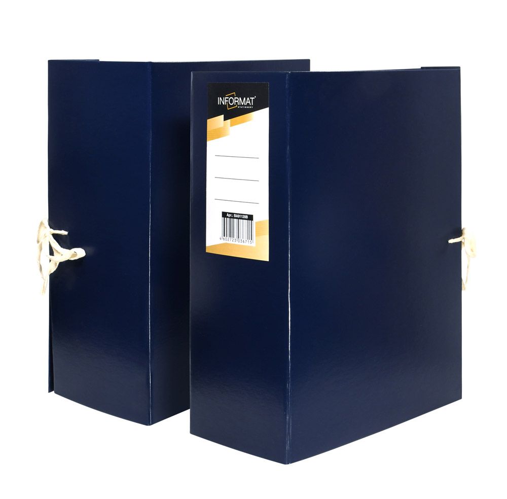 Формат: А4 Цвет: синий Материал: бумвинил Вид изделия: Короб архивный Способ закрытия: 2 завязки Конструкция: разобранный Мин. партия и варианты упаковок: 1 / 10 Короб архивный INFORMAT 120 мм А4 синий бумвинил, 2 завязки, вместимость до 120 листов разобранный