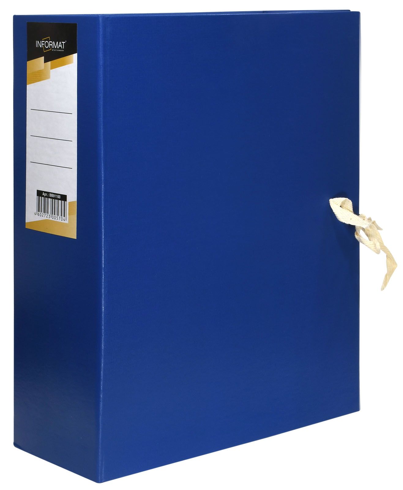 Формат: А4 Цвет: синий Материал: бумвинил Вид изделия: Короб архивный Способ закрытия: 2 завязки Конструкция: разобранный Мин. партия и варианты упаковок: 1 / 10 Короб архивный INFORMAT 140 мм А4 синий бумвинил, 2 завязки, вместимость до 1400 листов разобранный