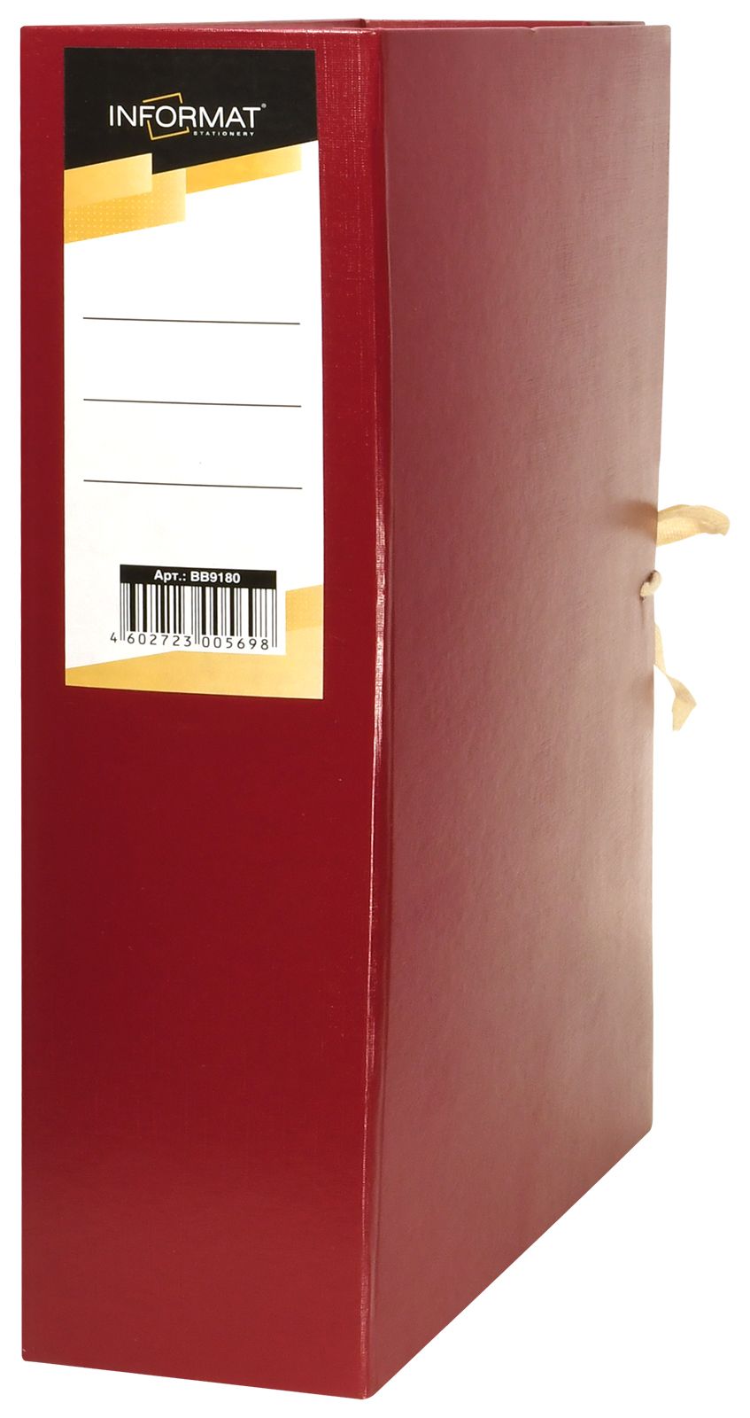 Формат: А4 Цвет: бордо Материал: бумвинил Вид изделия: Короб архивный Способ закрытия: 2 завязки Ширина корешка, мм: 100 Мин. партия и варианты упаковок: 1 -