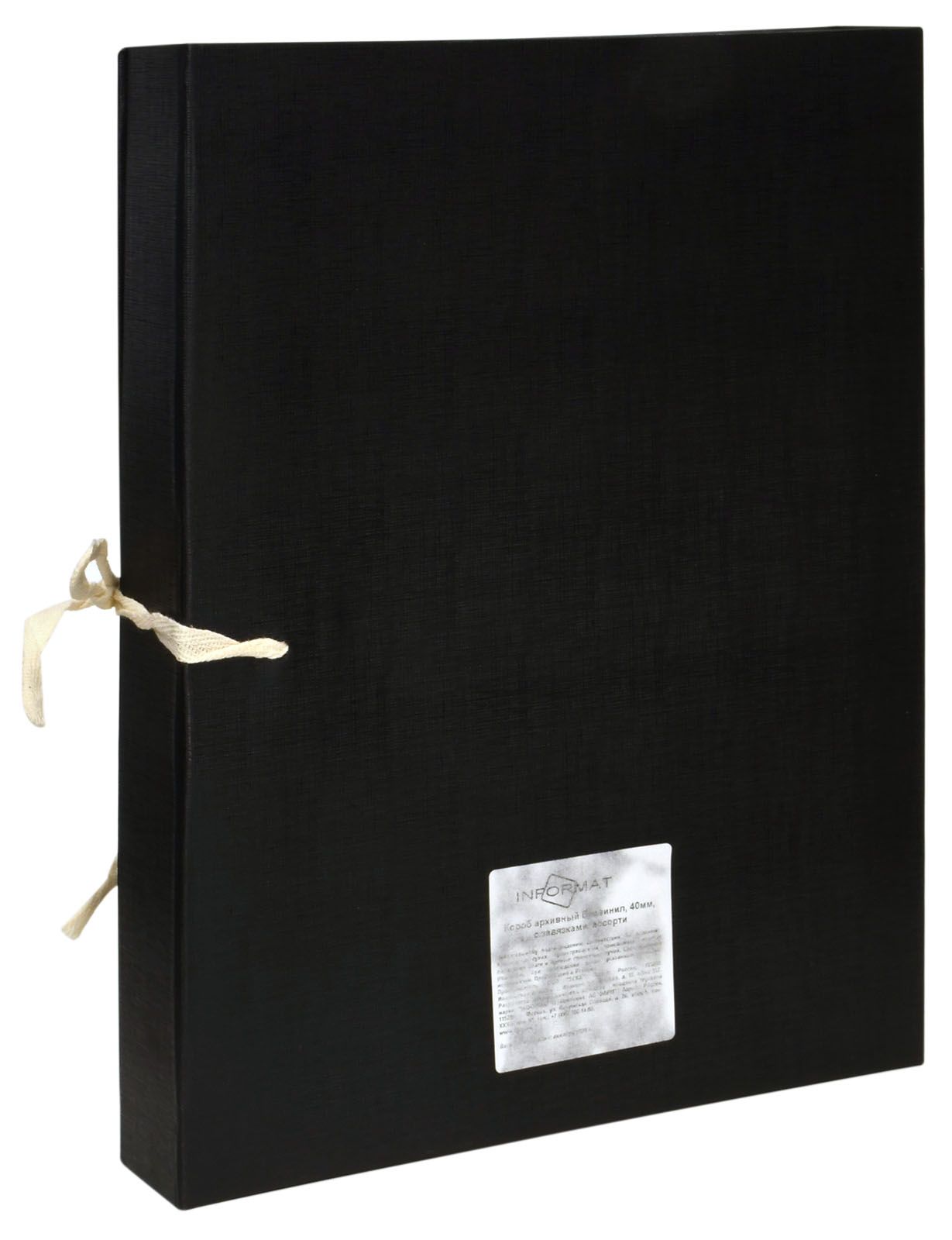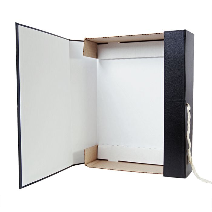 Формат: А4 Цвет: черный Материал: бумвинил Вид изделия: Короб архивный Способ закрытия: 2 завязки Конструкция: разобранный Мин. партия и варианты упаковок: 1 / 25 -