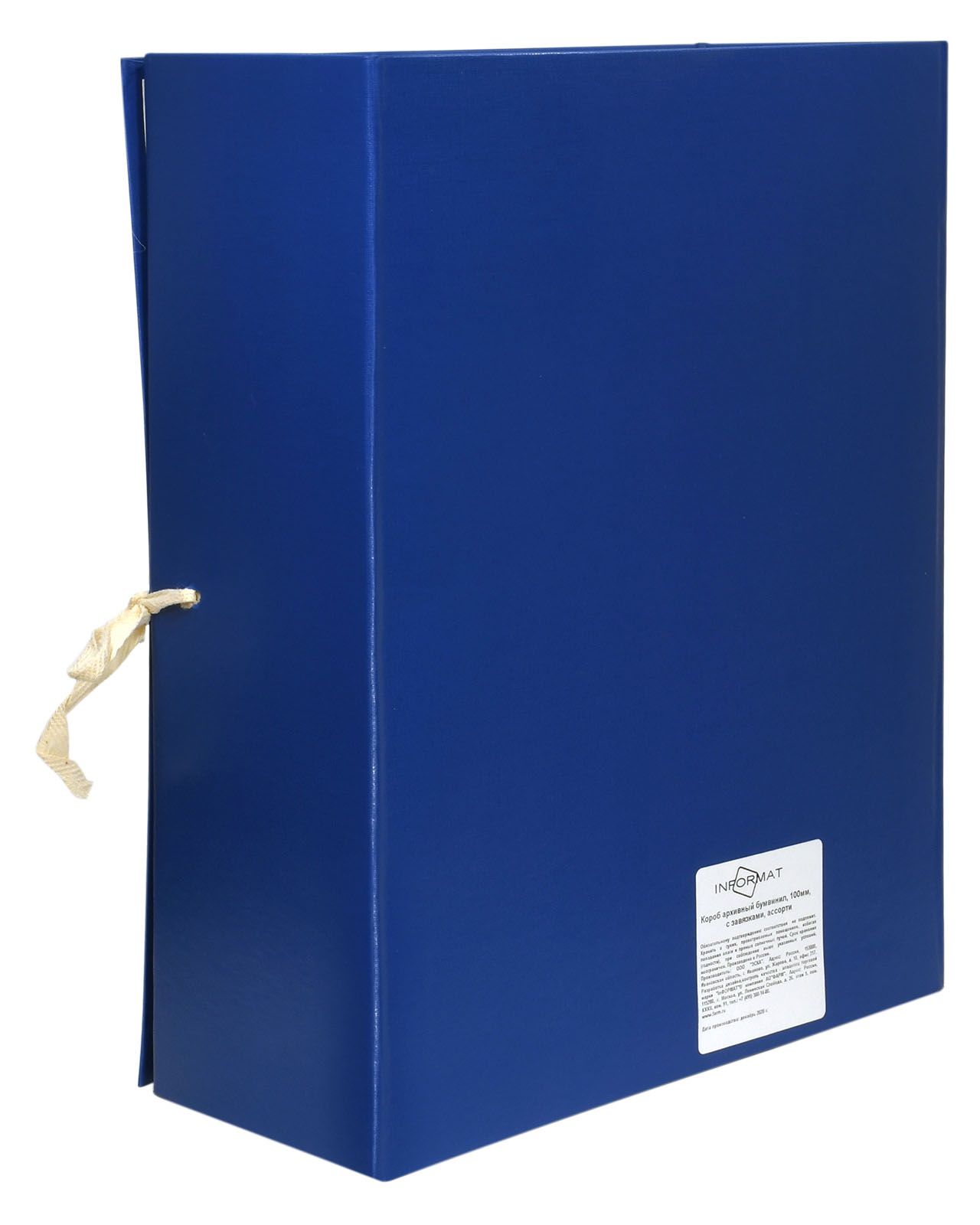 Формат: А4 Цвет: синий Материал: бумвинил Вид изделия: Короб архивный Способ закрытия: 2 завязки Конструкция: разобранный Мин. партия и варианты упаковок: 1 / 25 -