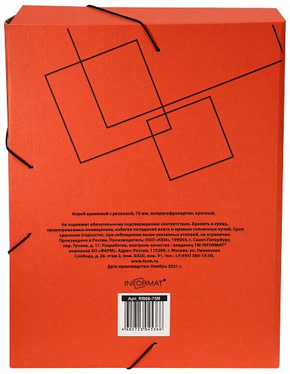 Цветной архивный короб INFORMAT из микрогофрокартона на резинках — удобное решение для хранения документов и организации рабочего пространства. Модель выполнена из прочного красного микрогофрокартона, оснащена эластичными резинками для надежного закрытия и рассчитана на вместимость до 700 листов формата А4.