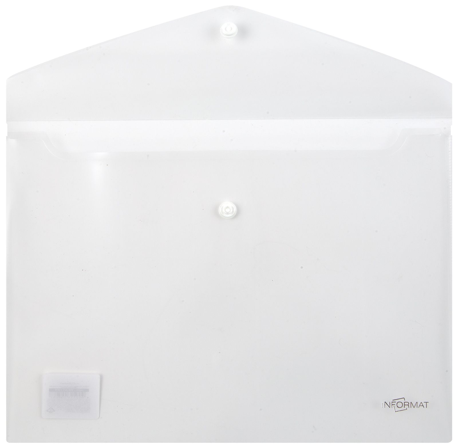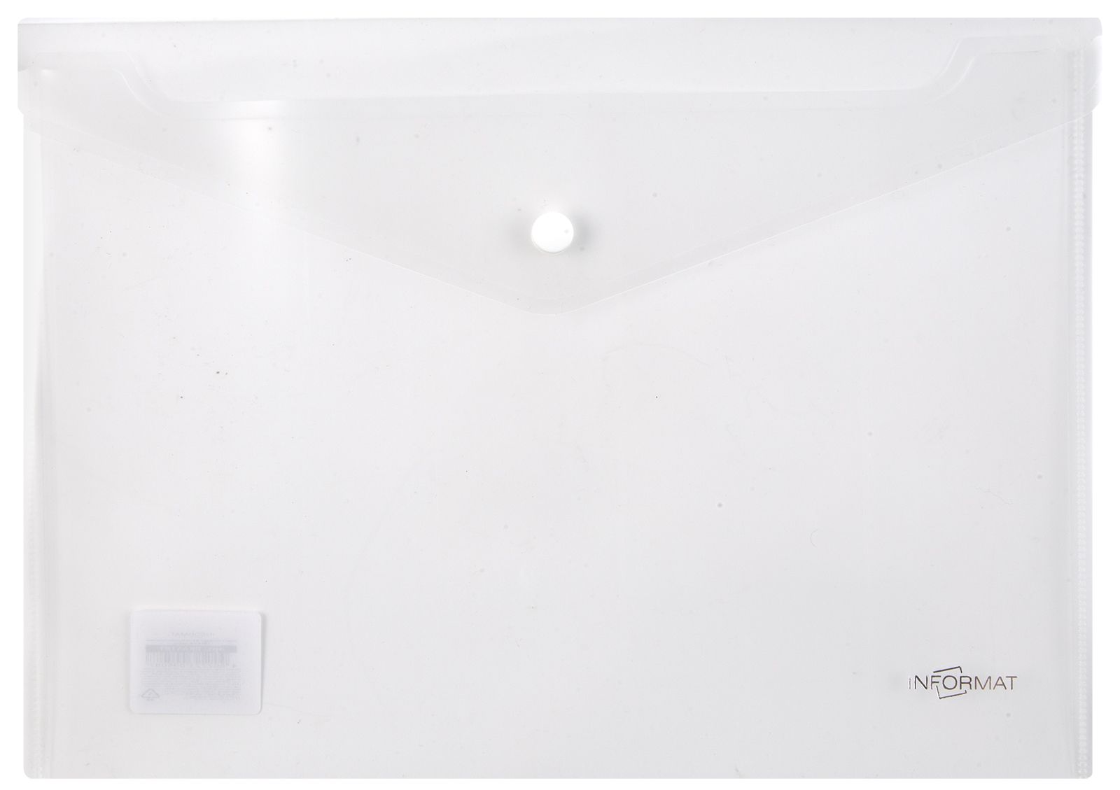 Формат: А4 Цвет: прозрачный Ориентация: горизонтальный Ширина, мм: 330 Высота, мм: 240 Материал: пластик Мин. партия и варианты упаковок: 1 / 10 / 100 Пластиковый конверт INFORMAT А4, на кнопке, с карманом, прозрачный 150 мкм
