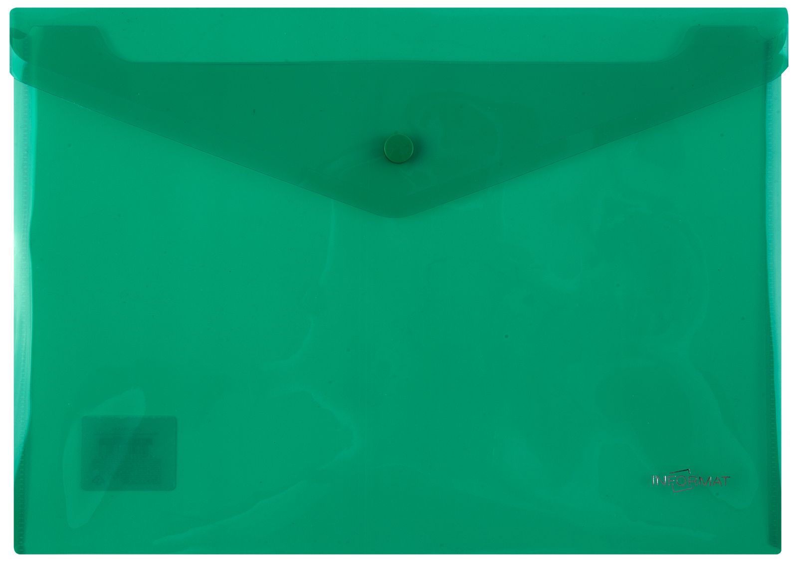 Формат: А4 Цвет: зеленый Ориентация: горизонтальный Ширина, мм: 330 Высота, мм: 240 Материал: пластик Мин. партия и варианты упаковок: 1 / 10 / 100 Пластиковый конверт INFORMAT А4, на кнопке, прозрачный 180 мкм, зеленый