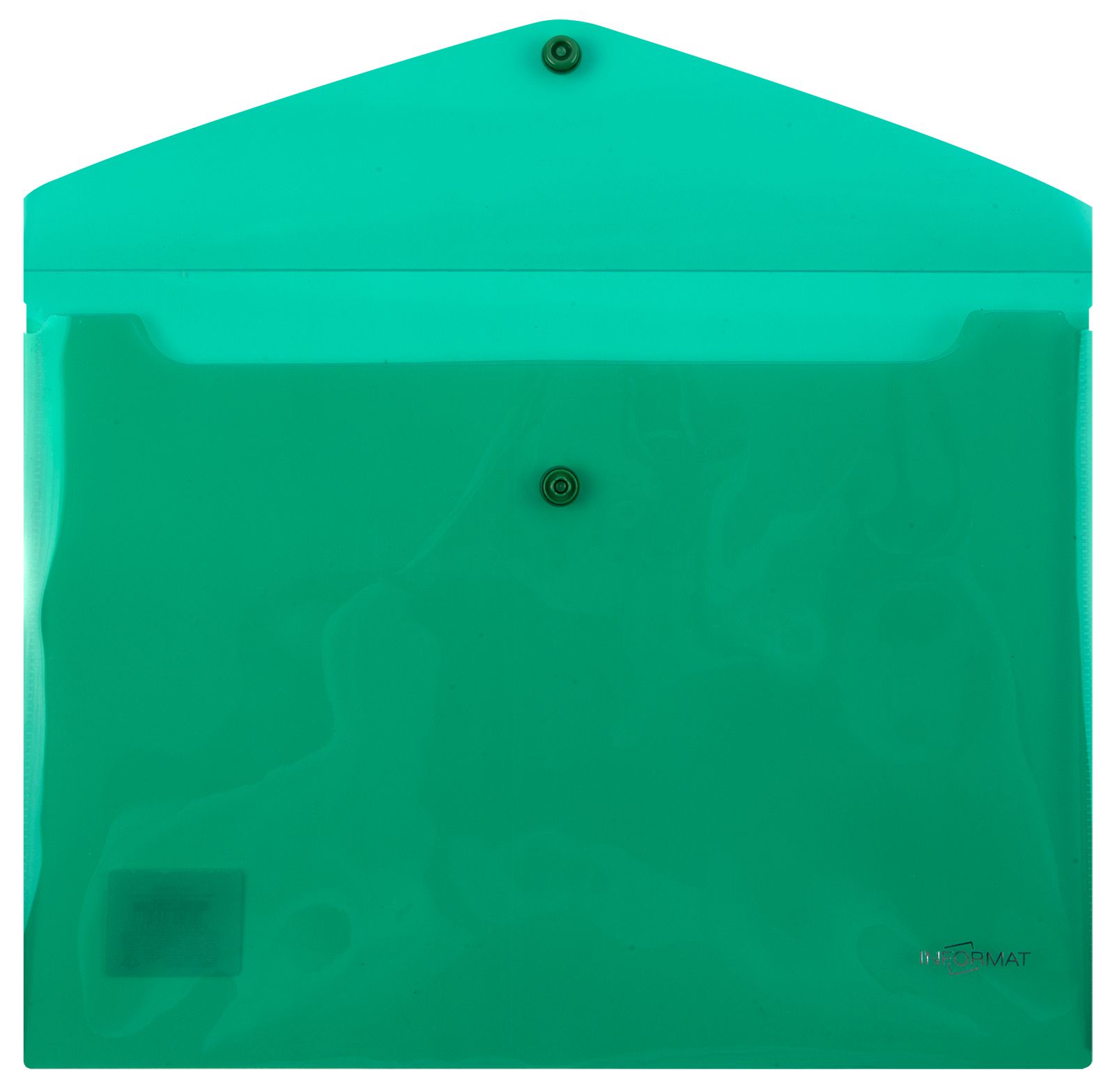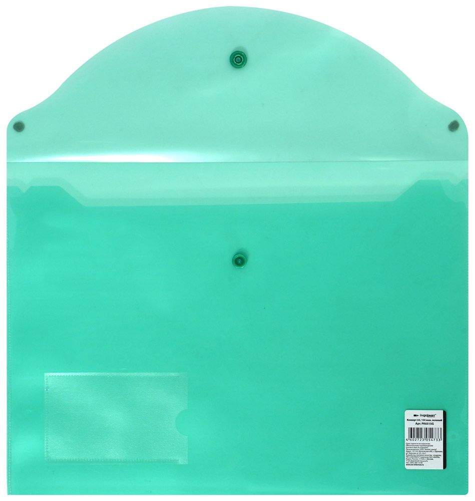 Формат: А4 Цвет: зеленый Ориентация: горизонтальный Ширина, мм: 330 Высота, мм: 240 Материал: пластик Мин. партия и варианты упаковок: 1 / 10 / 100 Пластиковый конверт INFORMAT А4, на кнопке, с карманом, прозрачный 150 мкм, зеленый