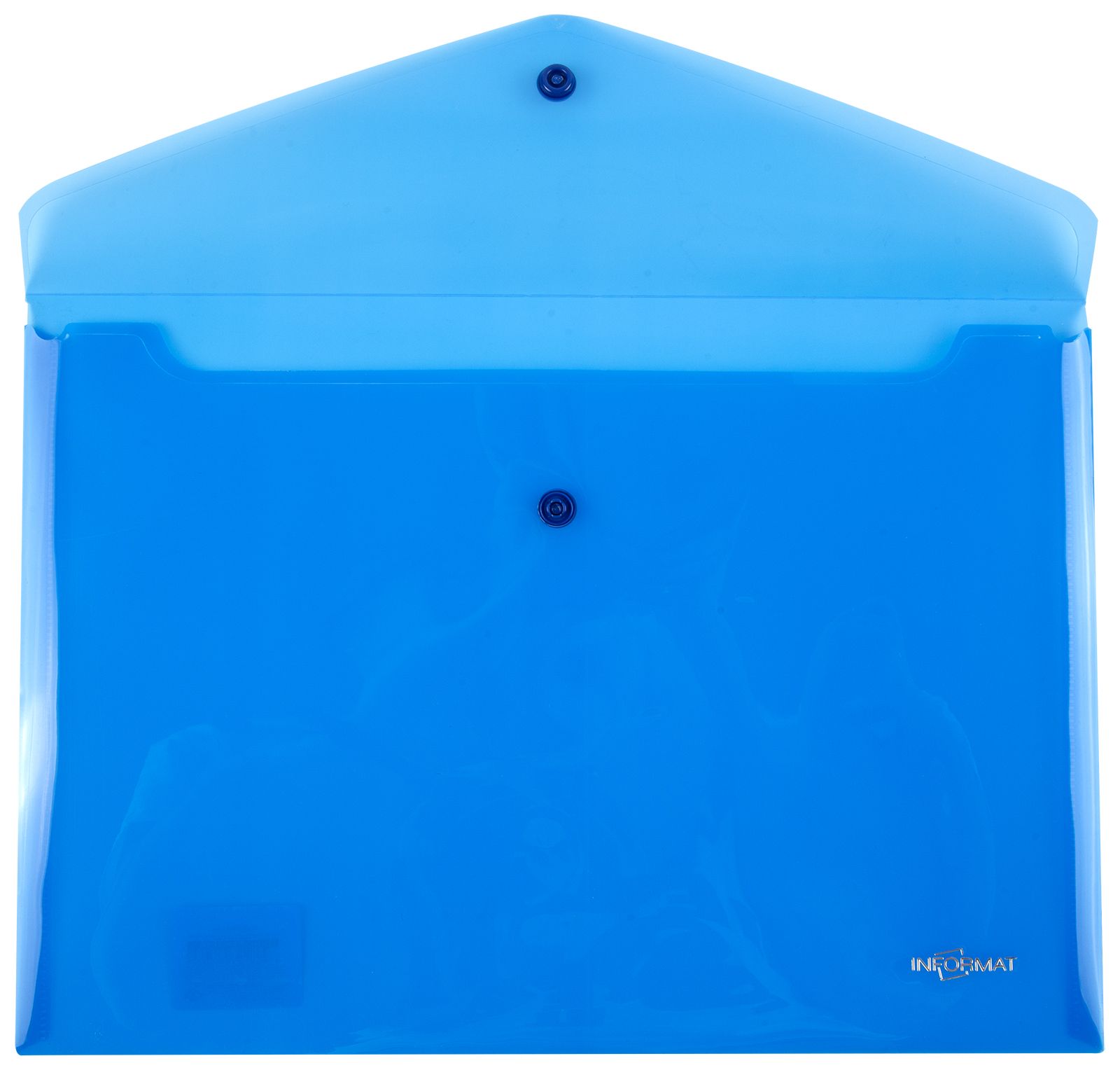 Формат: А4 Цвет: синий Ориентация: горизонтальный Ширина, мм: 330 Высота, мм: 240 Материал: пластик Мин. партия и варианты упаковок: 1 / 10 / 100 Пластиковый конверт INFORMAT А4, на кнопке, прозрачный 180 мкм, синий