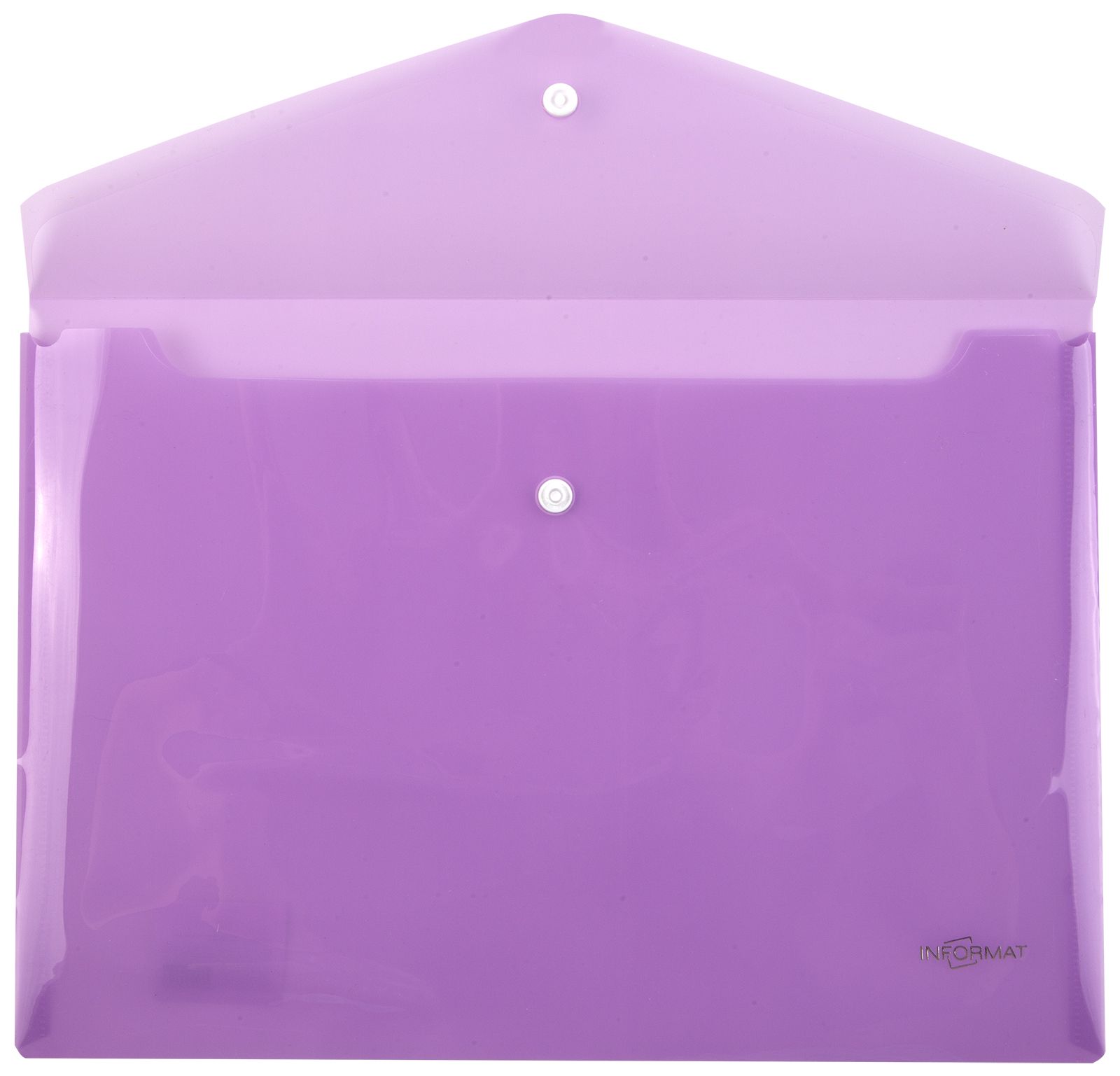 Формат: А4 Цвет: фиолетовый Ориентация: горизонтальный Ширина, мм: 330 Высота, мм: 240 Материал: пластик Мин. партия и варианты упаковок: 1 / 10 / 100 Пластиковый конверт INFORMAT А4, на кнопке, прозрачный 180 мкм, фиолетовый
