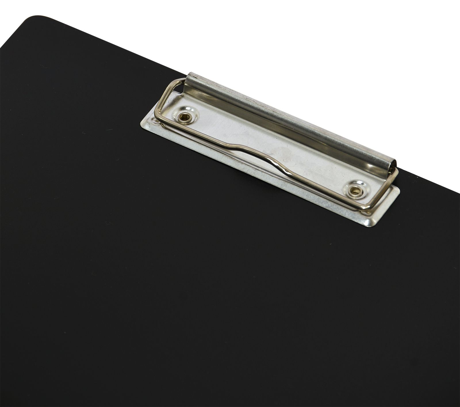 Планшет с верхним металлическим прижимом и крышкой используется для работы с бумагами в дороге, для записи на весу. Изготовлен из пластика толщиной 0,9 мм (900 мкм). Металлический прижим надежно фиксирует до 50 листов.