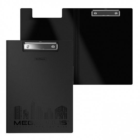 Планшет ErichKrause MEGAPOLIS А4 черный, пластиковый, выборочный УФ-лак, с крышкой
