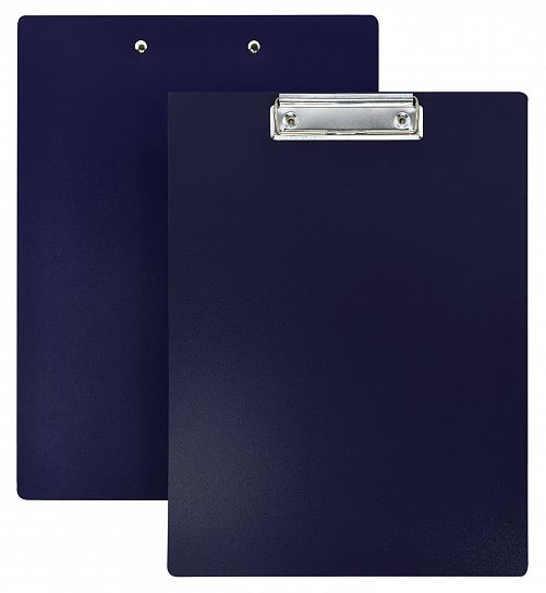 Папка-планшет с зажимом и крышкой формат А4, размер 225 х 315 мм, цвет синий, фиксирует до 90 листов. Изготовлен из жесткого износостойкого картона с покрытием бумвинил. Металлический прижимной механизм с верхним расположением обеспечит возможность комфортной работы с бумагами на весу, а выдвижной подвес позволяет разместить планшет на вертикальной поверхности. Крышка позволит надежно защитить документы от негативного влияния внешних факторов.
