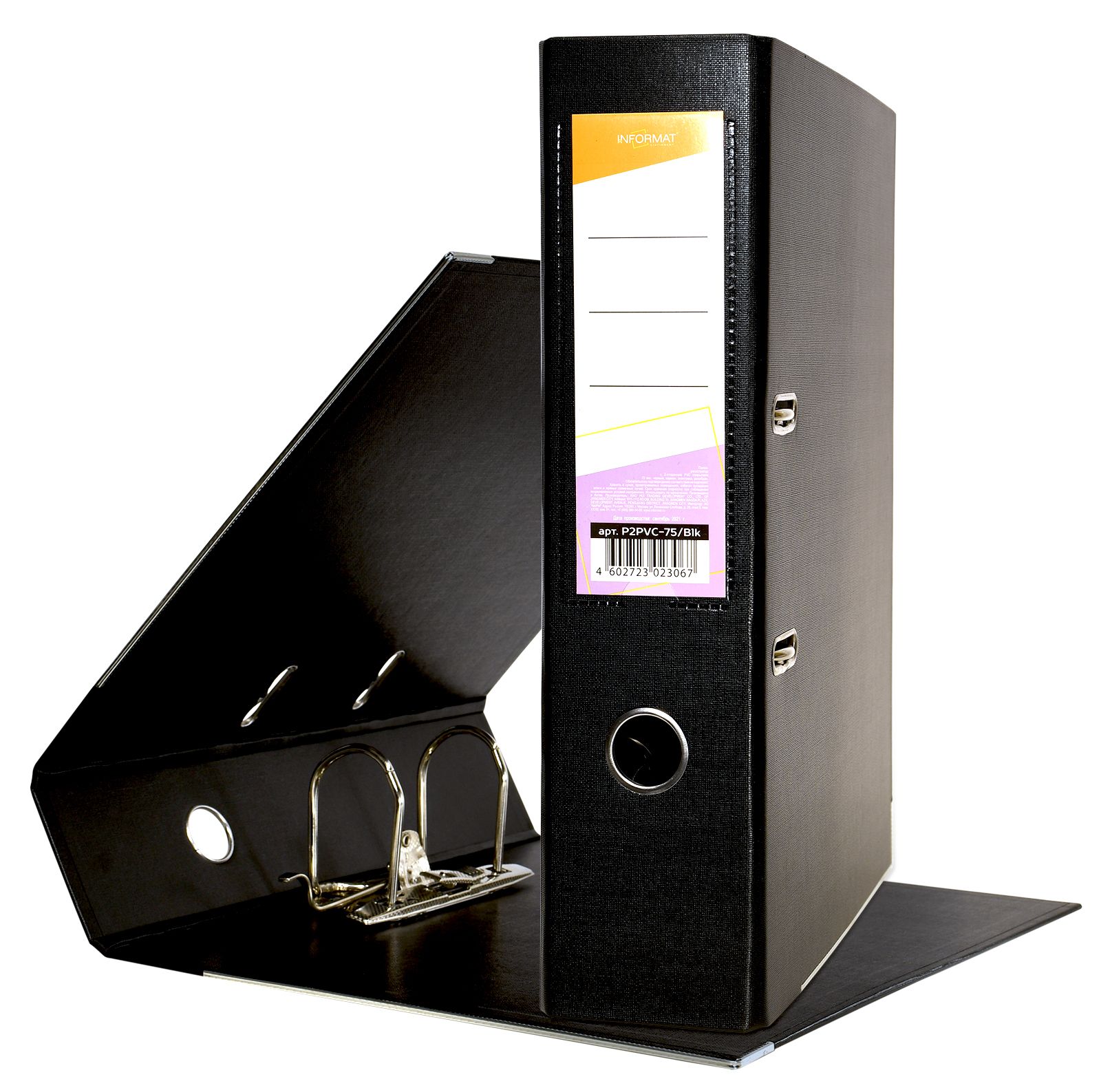 Формат: А4 Цвет: черный Ширина, мм: 75 Материал: картон Вместимость листов: 480 Наличие металлической окантовки: Да Мин. партия и варианты упаковок: 1 / 10 / 50 Папка-регистратор INFORMAT 75 мм двухстороннее покрытие PVC, черная