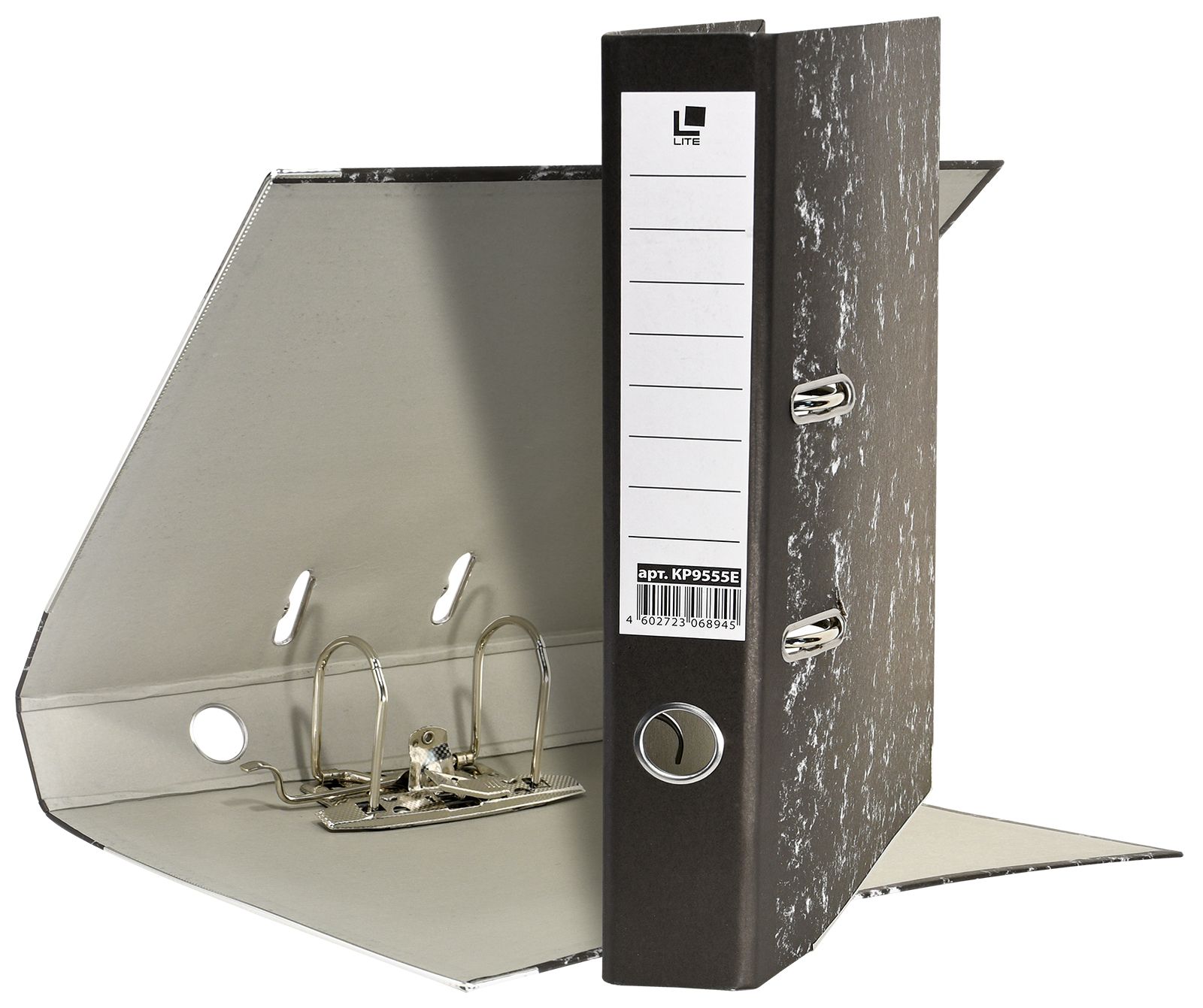 Формат: А4 Цвет: мрамор Ширина, мм: 55 Материал: картон Вместимость листов: 350 Наличие металлической окантовки: Да Мин. партия и варианты упаковок: 1 / 50 Папка-регистратор LITE 55 мм бумага, черный мрамор