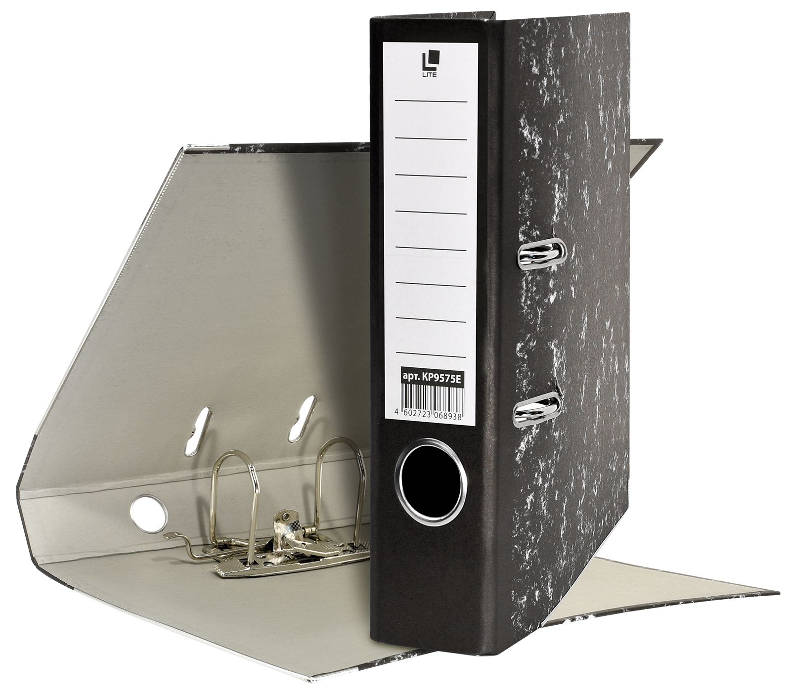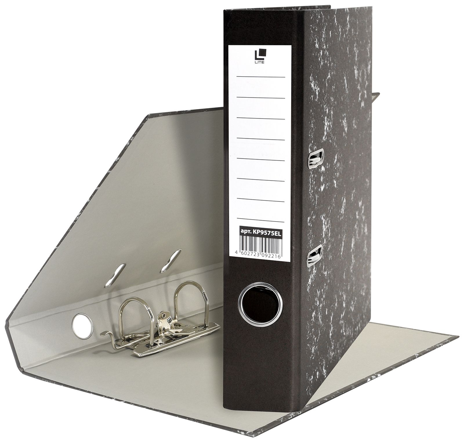 Формат: А4 Цвет: мрамор Ширина, мм: 75 Материал: картон Вместимость листов: 480 Наличие металлической окантовки: Нет Мин. партия и варианты упаковок: 1 / 50 Папка-регистратор LITE 75 мм бумага, черный мрамор