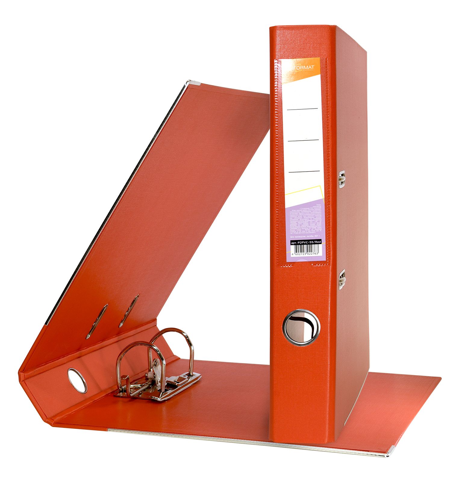 Формат: А4 Цвет: красный Ширина, мм: 55 Материал: картон Вместимость листов: 350 Наличие металлической окантовки: Да Мин. партия и варианты упаковок: 1 / 10 / 50 Папка-регистратор INFORMAT 55 мм двухстороннее покрытие PVC, красная