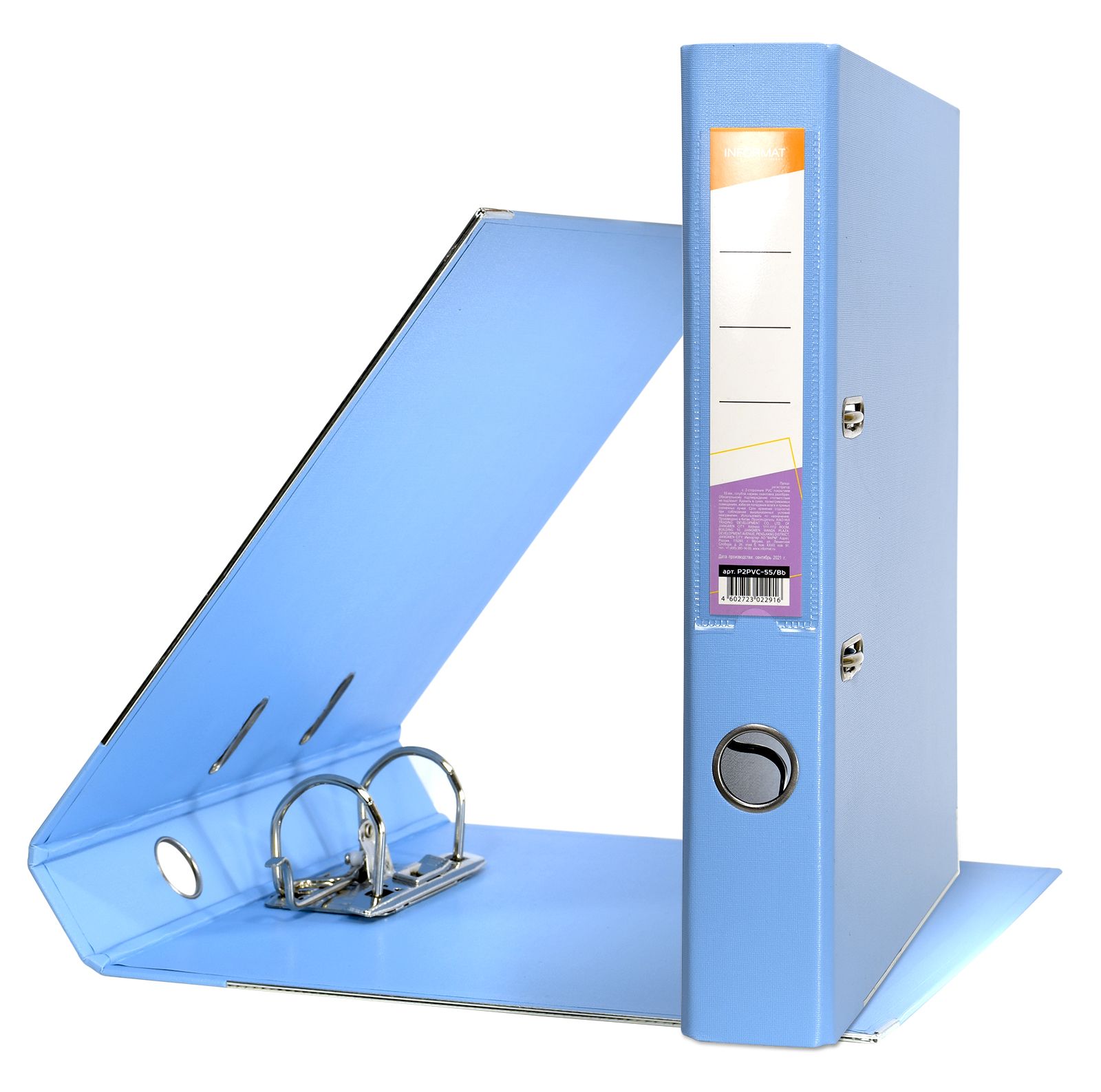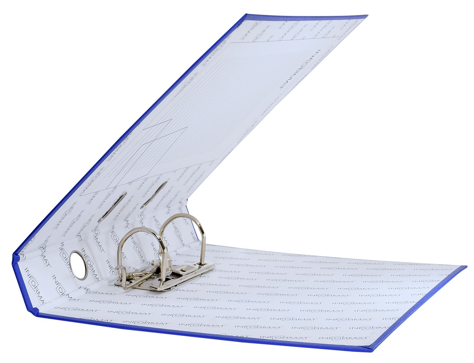 Формат: А4 Цвет: голубой Ширина, мм: 55 Материал: картон Вместимость листов: 350 Наличие металлической окантовки: Да Мин. партия и варианты упаковок: 1 / 10 / 50 Папка-регистратор INFORMAT 55 мм двухстороннее покрытие PVC, голубая