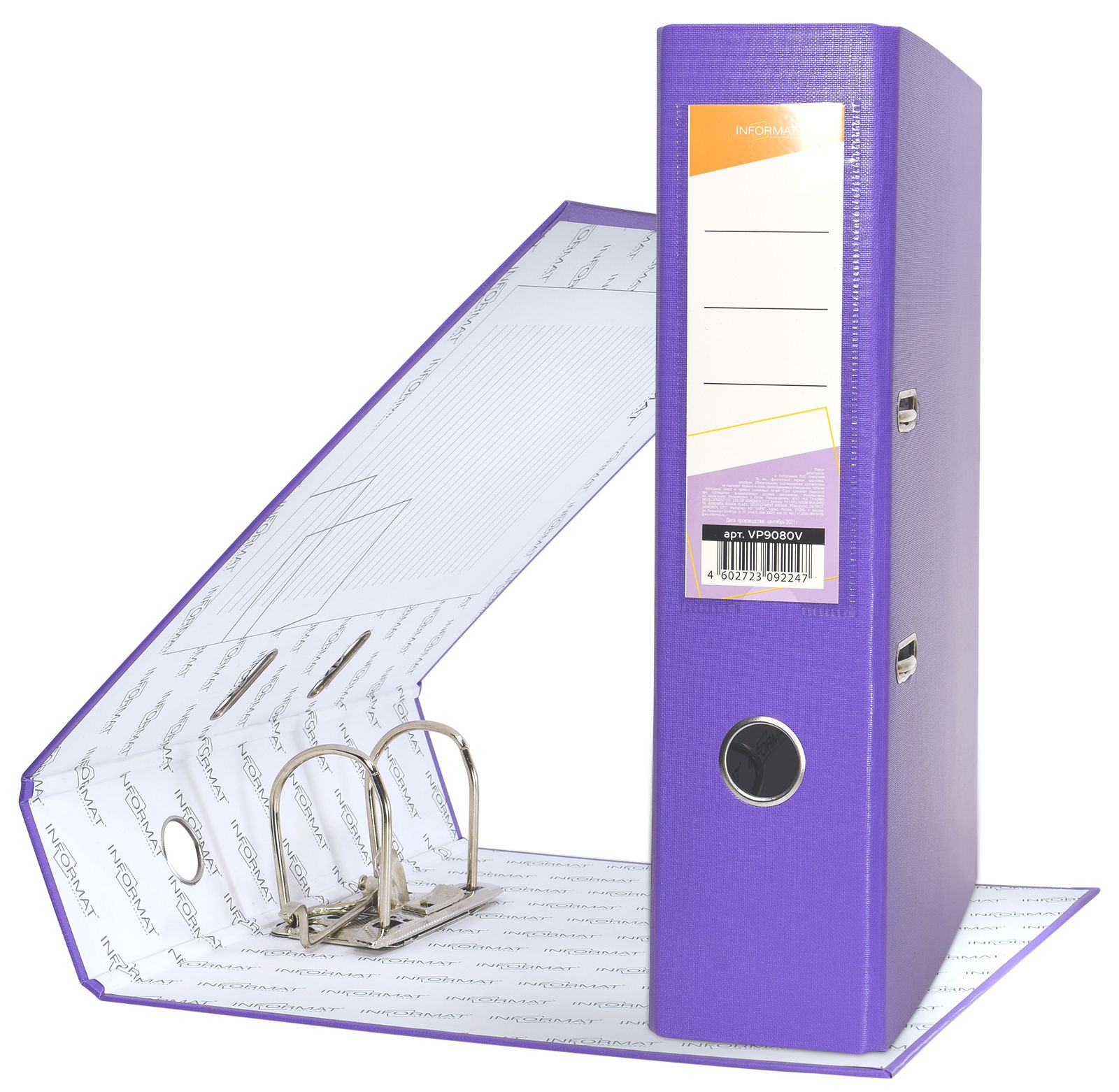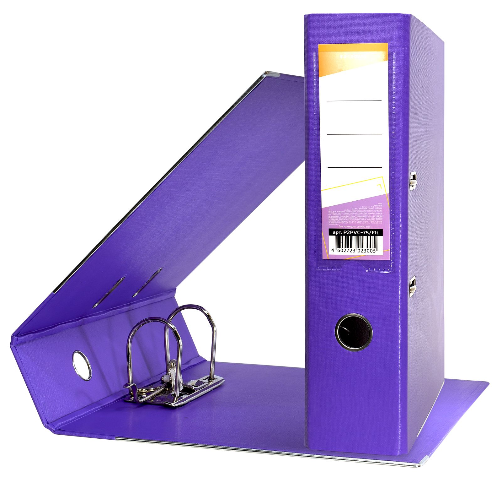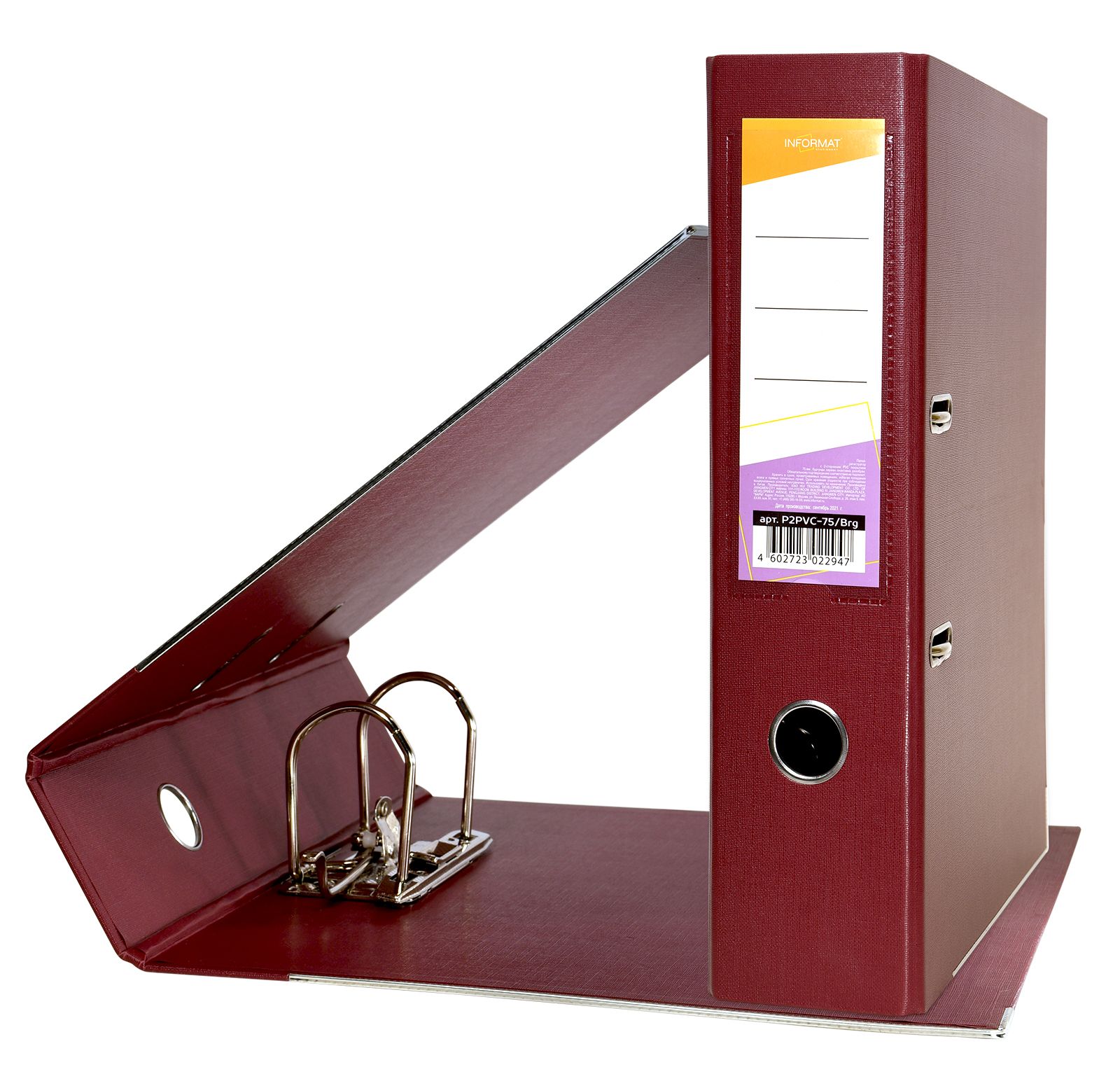 Формат: А4 Цвет: фиолетовый Ширина, мм: 75 Материал: картон Вместимость листов: 480 Наличие металлической окантовки: Нет Мин. партия и варианты упаковок: 1 / 10 / 50 Папка-регистратор INFORMAT 75 мм одностороннее покрытие PVC, фиолетовая