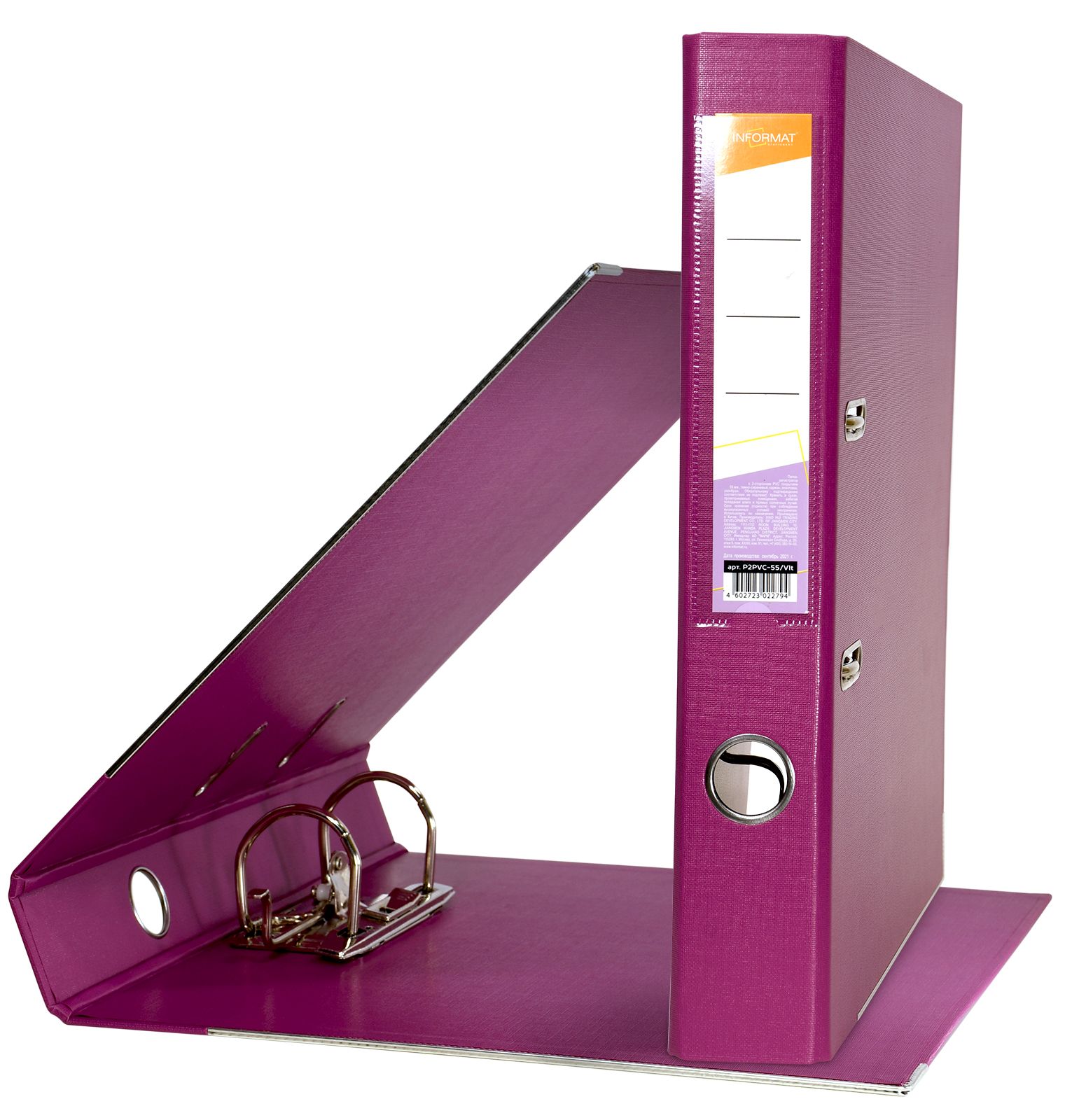 Формат: А4 Цвет: темно-сиреневый Ширина, мм: 55 Материал: картон Вместимость листов: 350 Наличие металлической окантовки: Да Мин. партия и варианты упаковок: 1 / 10 / 50 Папка-регистратор INFORMAT 55 мм двухстороннее покрытие PVC, темно-сиреневая