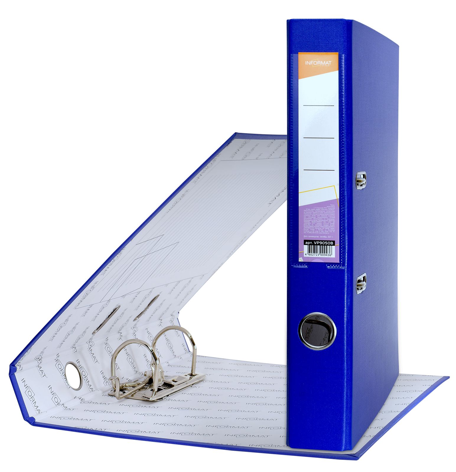 Формат: А4 Цвет: синий Ширина, мм: 55 Материал: картон Вместимость листов: 350 Наличие металлической окантовки: Нет Мин. партия и варианты упаковок: 1 / 10 / 50 Папка-регистратор INFORMAT 55 мм одностороннее покрытие PVC, синяя
