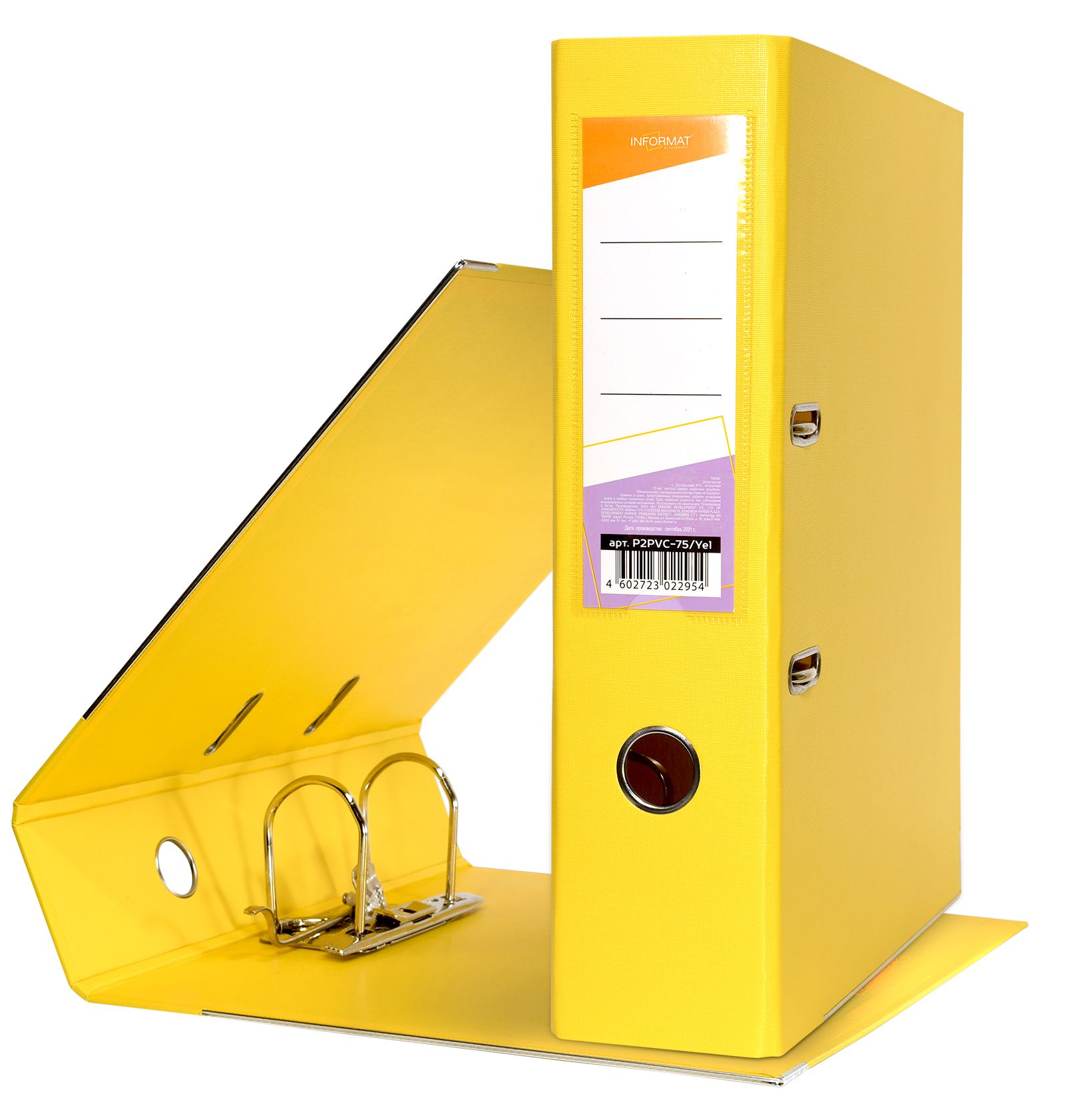 Формат: А4 Цвет: желтый Ширина, мм: 75 Материал: картон Вместимость листов: 480 Наличие металлической окантовки: Да Мин. партия и варианты упаковок: 1 / 10 / 50 Папка-регистратор INFORMAT 75 мм двухстороннее покрытие PVC, желтая