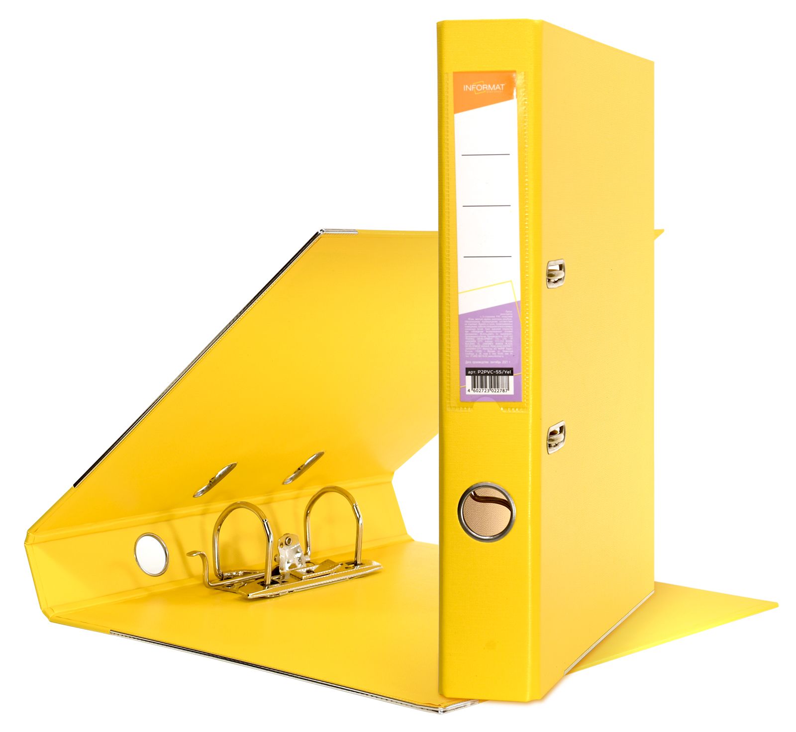 Формат: А4 Цвет: желтый Ширина, мм: 55 Материал: картон Вместимость листов: 350 Наличие металлической окантовки: Да Мин. партия и варианты упаковок: 1 / 10 / 50 Папка-регистратор INFORMAT 55 мм двухстороннее покрытие PVC, желтая