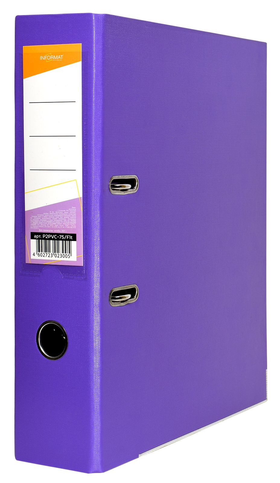 Папка-регистратор формата A4 изготовлена из качественного картона, покрытого с двух сторон покрытием PVC. Нижний край папки защищен металлическим кантом, предохраняющим ее от износа. Металлический арочный механизм съемный. На корешке папки имеется карман со сменной этикеткой для маркировки и кольцо для удобства захвата. Прорези на крышке папки удерживают ее, даже при большом количестве документов.