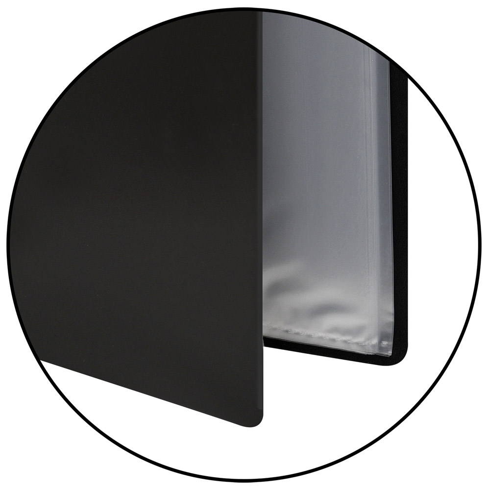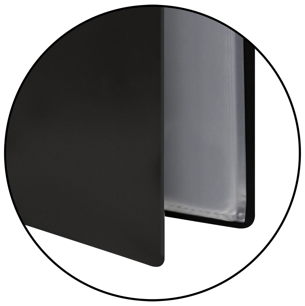 Формат: А4 Цвет: черный Ширина, мм: 230 Высота, мм: 310 Материал: пластик Толщина, мкм: 500 Мин. партия и варианты упаковок: 1 / 170 Папка с файлами LITE А4 20 файлов, пластик 500 мкм, черная