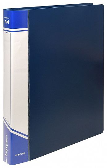 Формат: А4 Цвет: синий Ориентация: вертикальный Материал: пластик Вместимость листов: 300 Толщина, мкм: 700 Мин. партия и варианты упаковок: 1 / 10 Папка с кольцами INFORMAT А4, 4 кольца, 40 мм, пластик 700 мкм, синяя