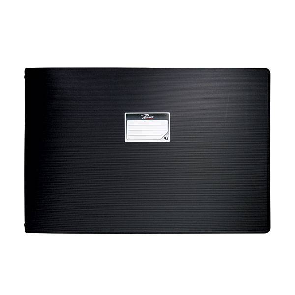 Пластиковая папка формата А3 снабжена специальным кольцевым механизмом и способна вместить до 140 листов. Листы в папке могут быть расположены как вертикально, так и горизонтально. Толщина пластика - 0,65 мм.