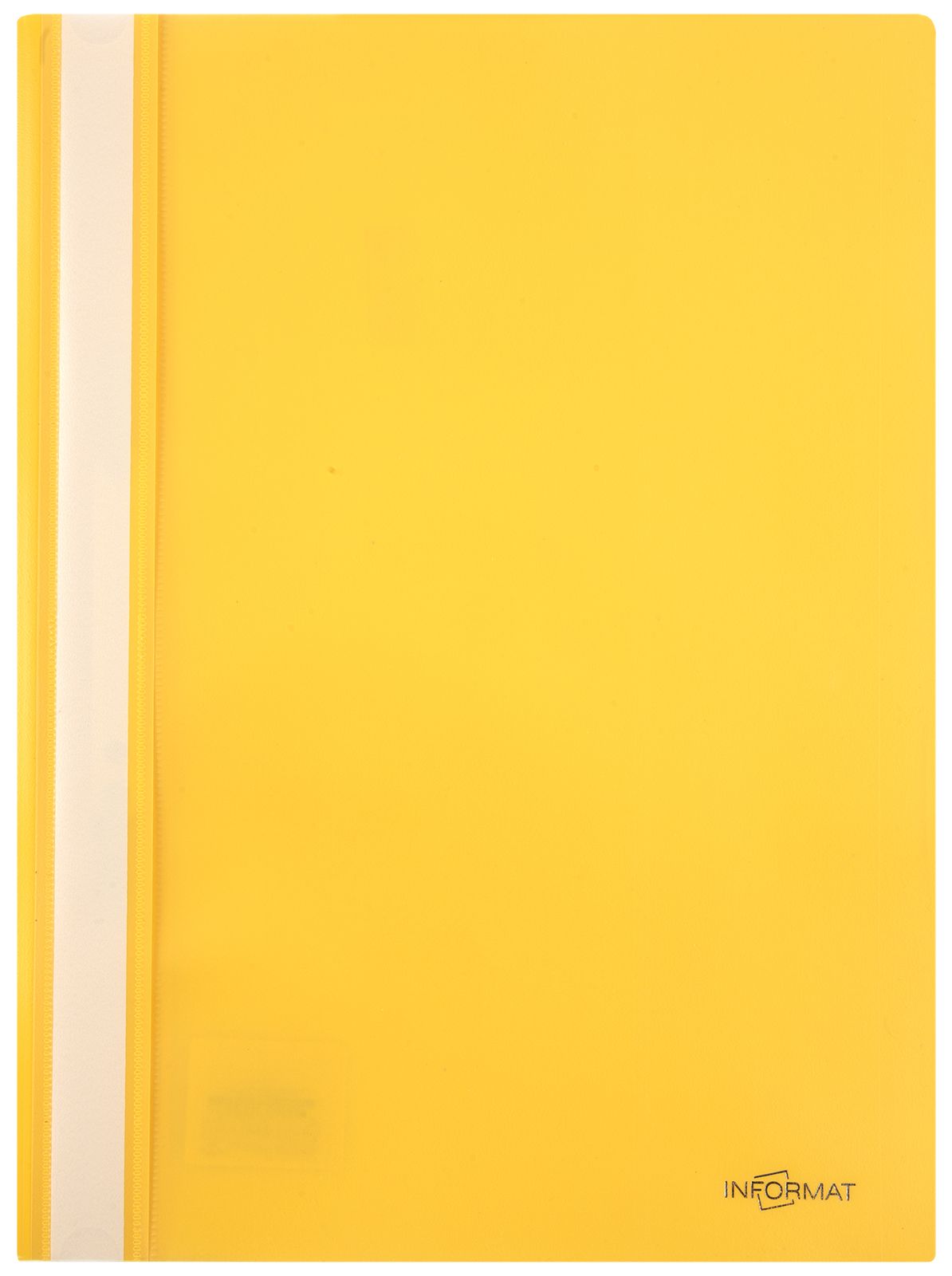 Формат: А4 Цвет: желтый Наличие перфорации: Нет Ширина, мм: 230 Высота, мм: 310 Материал: пластик Мин. партия и варианты упаковок: 1 / 25 / 400 Папка скоросшиватель INFORMAT А4 желтая, пластик 150 мкм, карман для маркировки