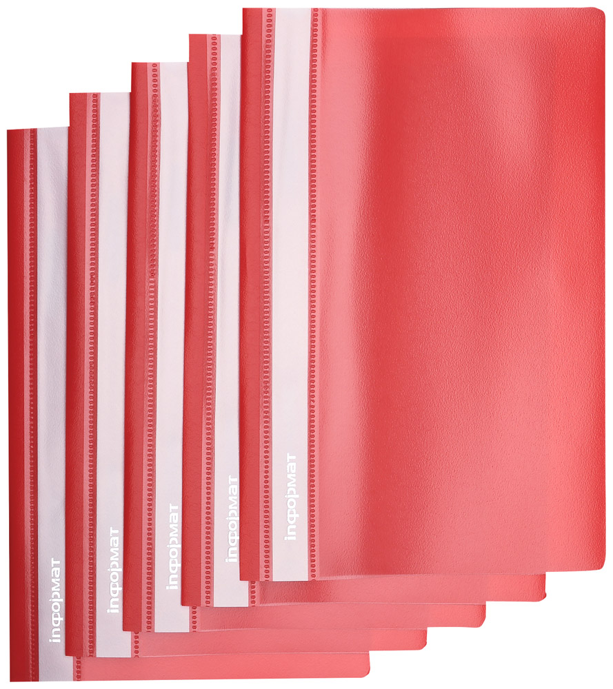 Формат: А4 Цвет: красный Наличие перфорации: Нет Ширина, мм: 230 Высота, мм: 310 Материал: пластик Мин. партия и варианты упаковок: 1 / 25 / 400 Папка скоросшиватель INFORMAT А4 красная, пластик 180 мкм, карман для маркировки