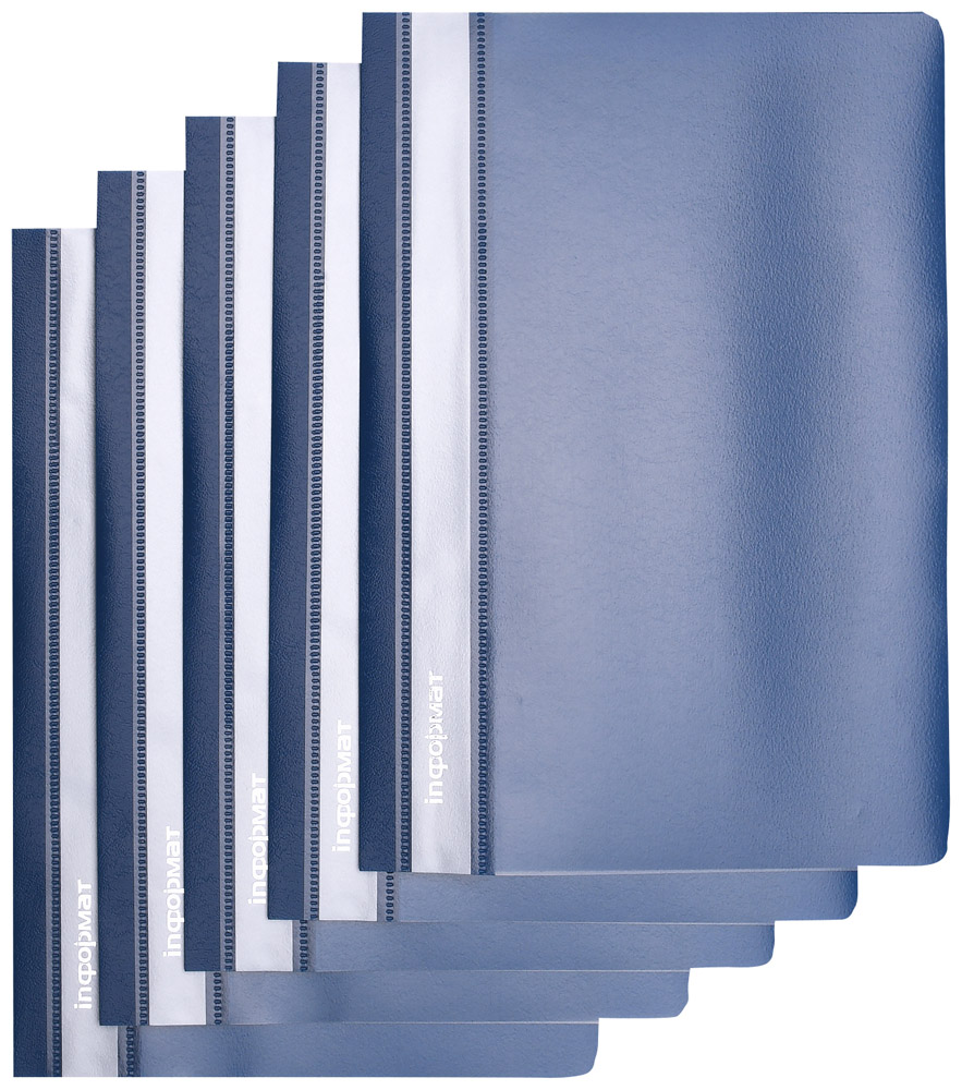 Формат: А4 Цвет: синий Наличие перфорации: Нет Ширина, мм: 230 Высота, мм: 310 Материал: пластик Мин. партия и варианты упаковок: 1 / 25 / 400 Папка скоросшиватель INFORMAT А4 синий, пластик 150 мкм, карман для маркировки