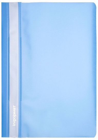 Формат: А4 Цвет: голубой Наличие перфорации: Нет Ширина, мм: 230 Высота, мм: 310 Материал: пластик Мин. партия и варианты упаковок: 1 / 25 / 400 Папка скоросшиватель INFORMAT А4 голубая, пластик 150 мкм, карман для маркировки