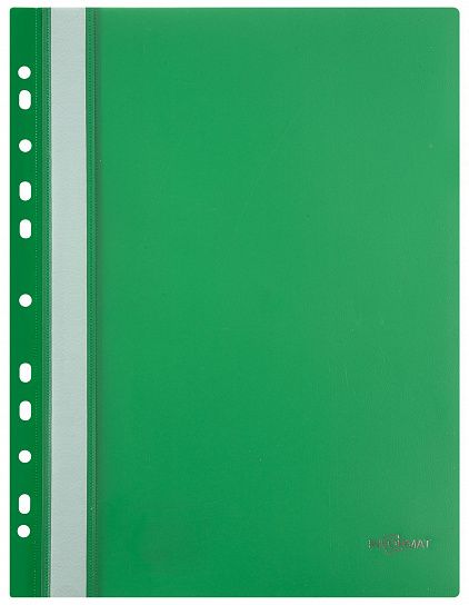 Формат: А4 Цвет: зеленый Наличие перфорации: Да Ширина, мм: 230 Высота, мм: 310 Материал: пластик Мин. партия и варианты упаковок: 1 / 25 / 400 Папка скоросшиватель INFORMAT А4 зеленая, пластик 180 мкм, карман для маркировки, с перфорацией