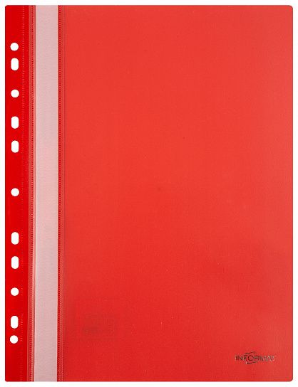 Формат: А4 Цвет: красный Наличие перфорации: Нет Ширина, мм: 230 Высота, мм: 310 Материал: пластик Мин. партия и варианты упаковок: 1 / 25 / 400 Папка скоросшиватель INFORMAT А4 красная, пластик 150 мкм, карман для маркировки