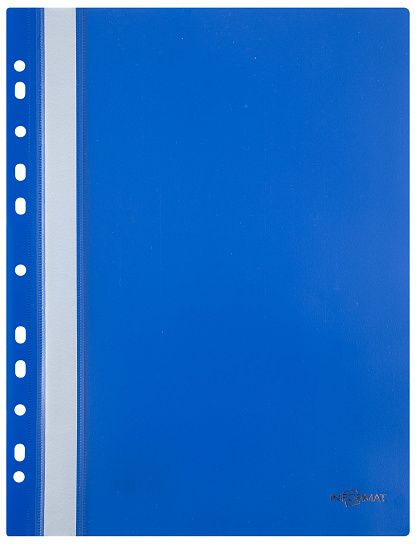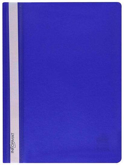 Формат: А4 Цвет: синий Наличие перфорации: Нет Ширина, мм: 230 Высота, мм: 310 Материал: пластик Мин. партия и варианты упаковок: 1 / 25 / 400 Папка скоросшиватель INFORMAT А4 синий, пластик 150 мкм, карман для маркировки