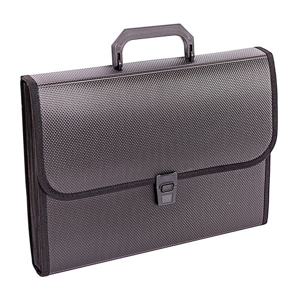 Формат: А4 Цвет: черный Материал: пластик Толщина, мкм: 700 Количество секций: 13 отделений Способ закрытия: замок Мин. партия и варианты упаковок: 1 / 6 -