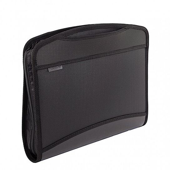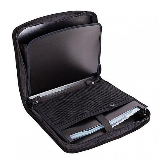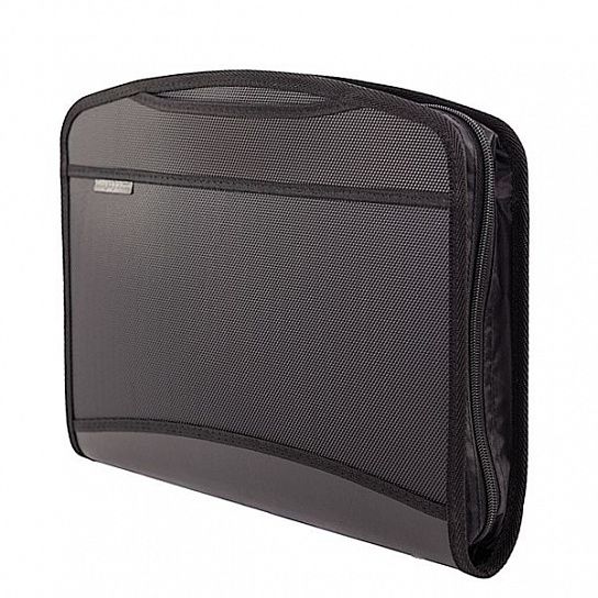 Вместительный портфель формата А4 из плотного пластика на молнии с двумя бегунками. Имеет одно большое отделение, отделение с шестью прозрачными разделителями, дополнительные карманы для ручек и прочих мелочей. Выдвижные ручки позволяют использовать его как папку. Толщина пластика - 1 мм (1000 мкм).
