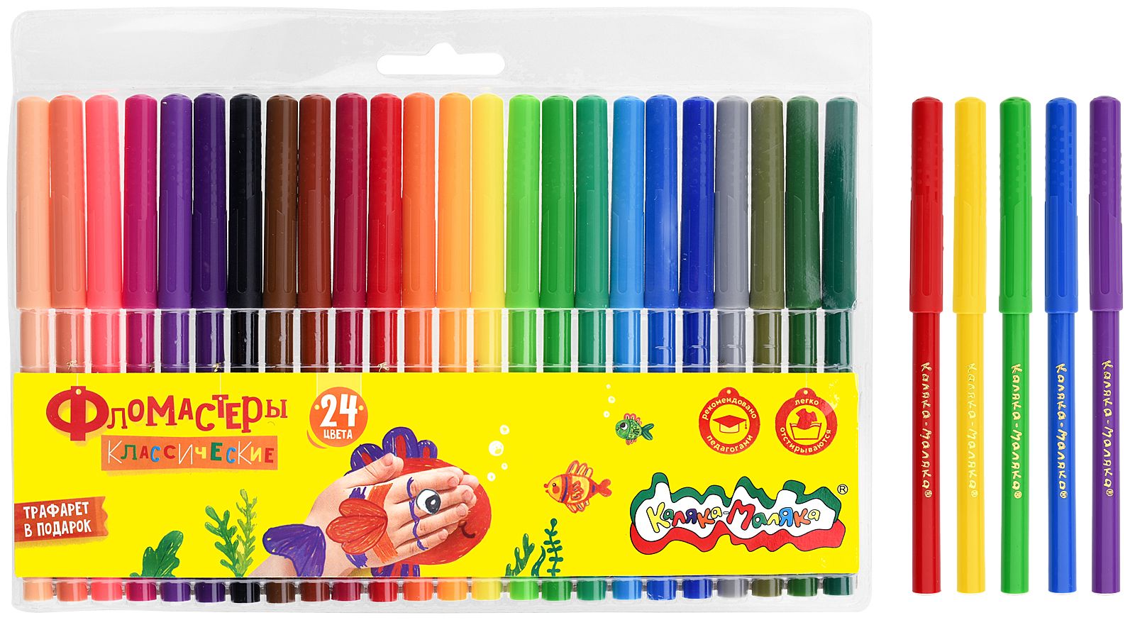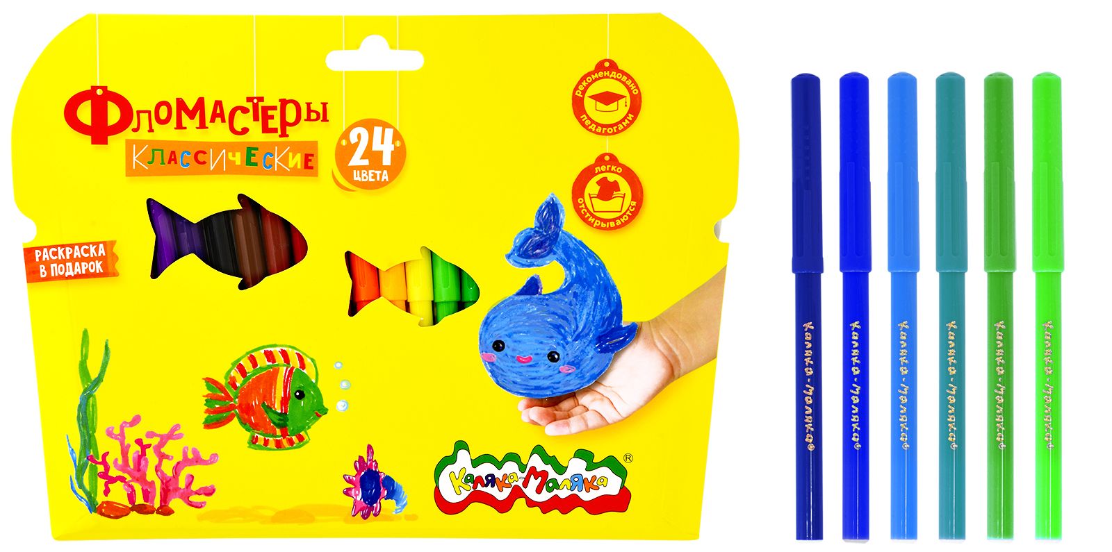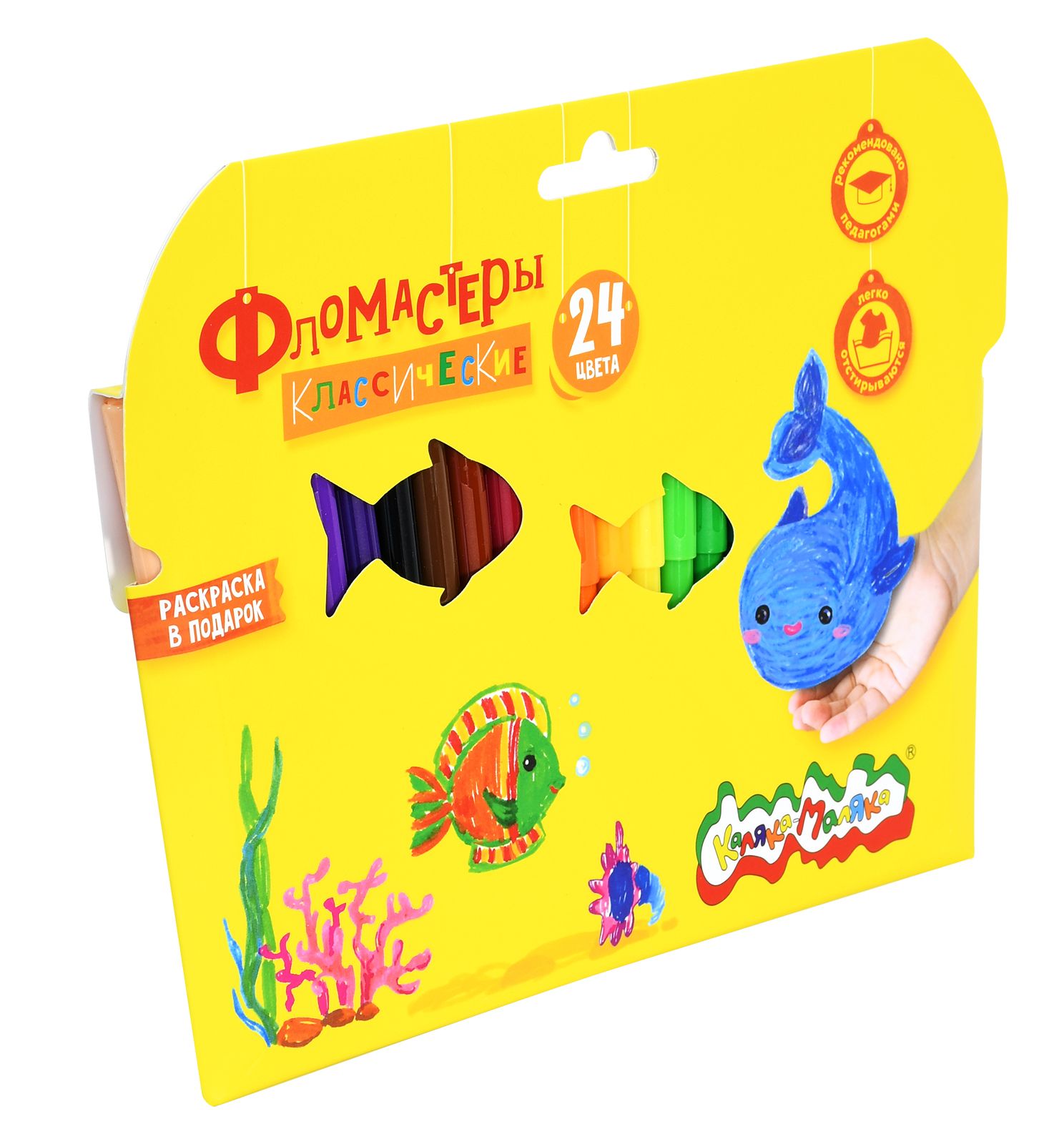 Количество цветов: 24 Наличие европодвеса: Да Форма наконечника: конический Тип фломастеров: классические Вид товара: Фломастеры Возраст: от 3 лет Мин. партия и варианты упаковок: 1 / 12 / 72 Фломастеры Каляка-Маляка утолщенные классические 24 цв. круглый корпус, суперсмываемые, двухсторонние, принт на корпусе, картонная упаковка