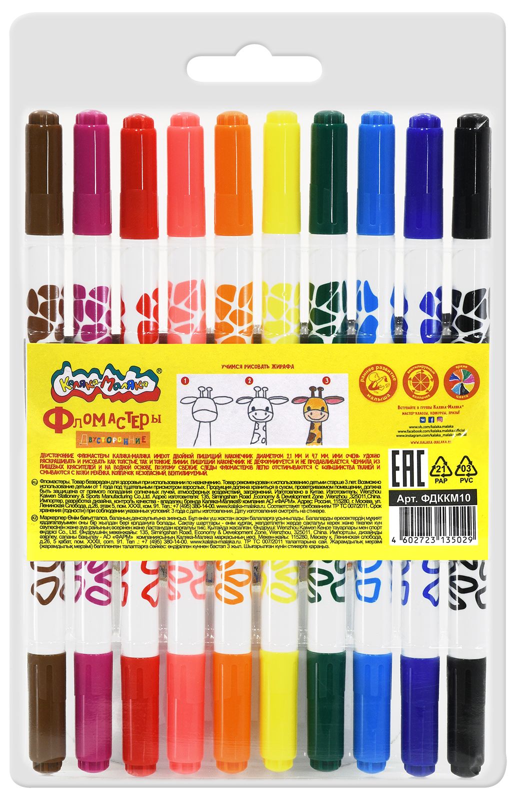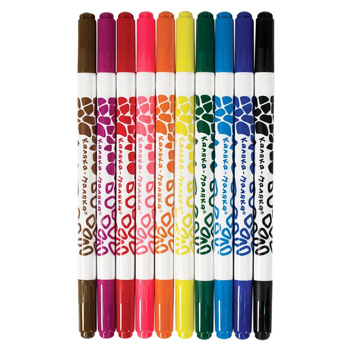 Количество цветов: 10 Наличие европодвеса: Да Форма наконечника: конический Тип фломастеров: классические Вид товара: Фломастеры Возраст: от 3 лет Мин. партия и варианты упаковок: 1 / 12 / 192 Фломастеры Каляка-Маляка классические 10 цв. круглый корпус, легкосмываемые, блистер двухсторонние принт на корпусе