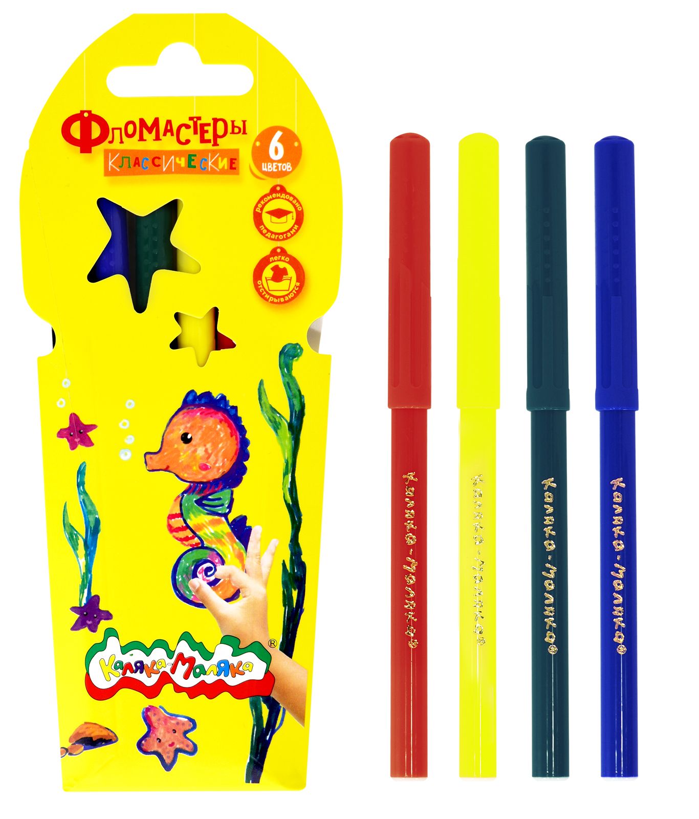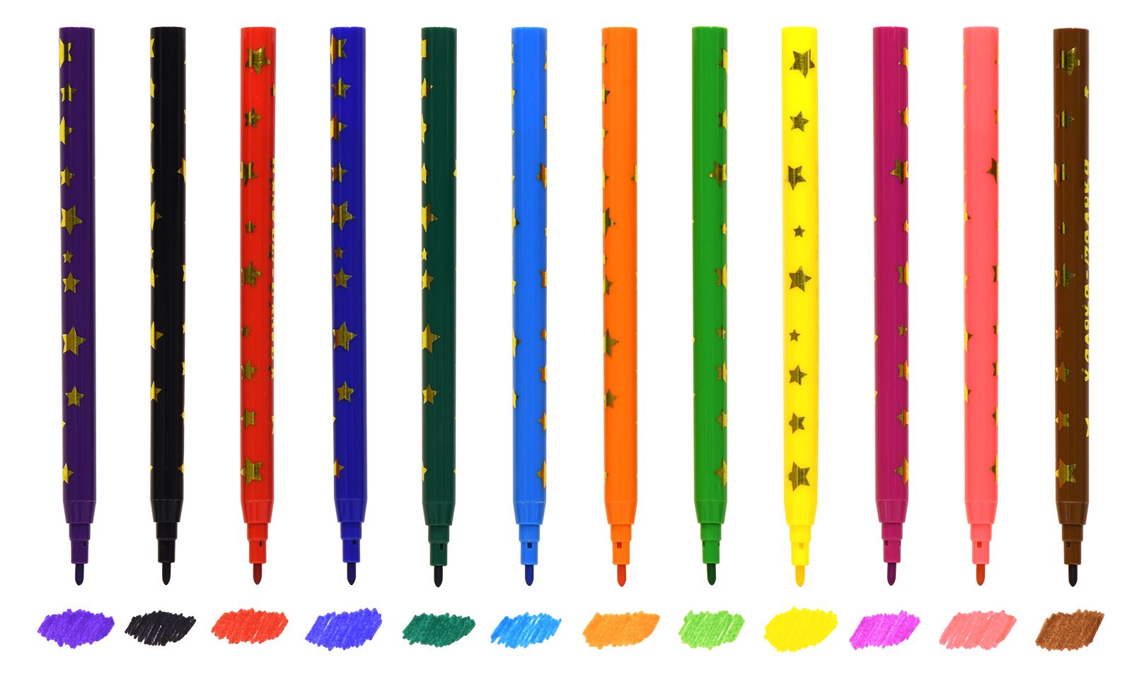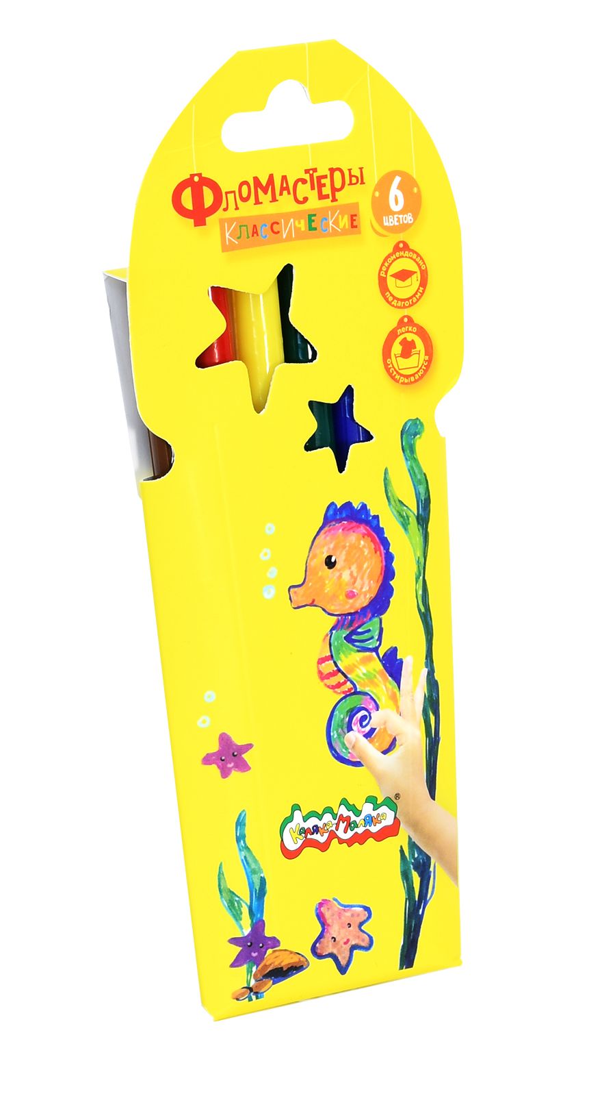 Количество цветов: 12 Наличие европодвеса: Да Форма наконечника: пулевидный Тип фломастеров: классические Вид товара: Фломастеры Возраст: от 3 лет Мин. партия и варианты упаковок: 1 / 12 / 240 Фломастеры Каляка-Маляка ЗВЕЗДОЧКИ классические 12 цв. круглый корпус, легкосмываемые, принт на корпусе, блистер