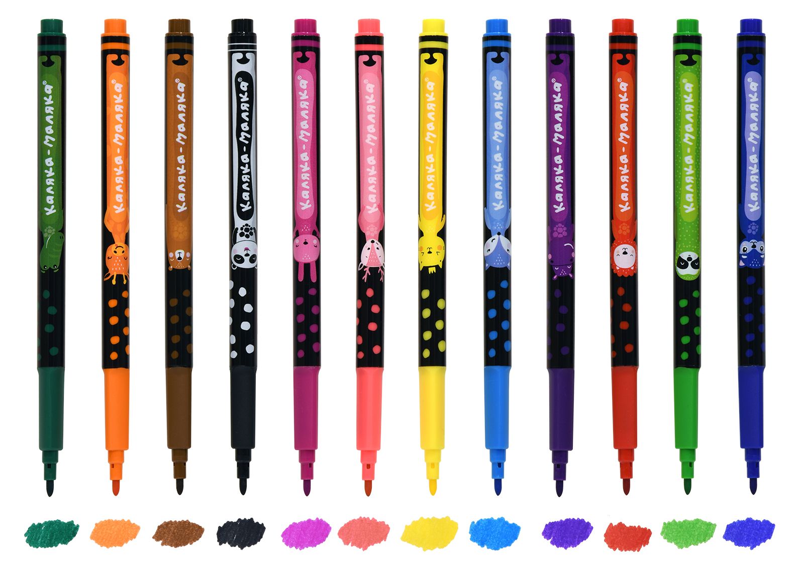 Количество цветов: 12 Наличие европодвеса: Да Форма наконечника: пулевидный Тип фломастеров: классические Вид товара: Фломастеры Возраст: от 3 лет Мин. партия и варианты упаковок: 1 / 24 / 192 Фломастеры Каляка-Маляка ВЕСЕЛЫЕ ЗВЕРЯТА классические 12 цв. трехгранный корпус, легкосмываемые, принт на корпусе, картонная упаковка
