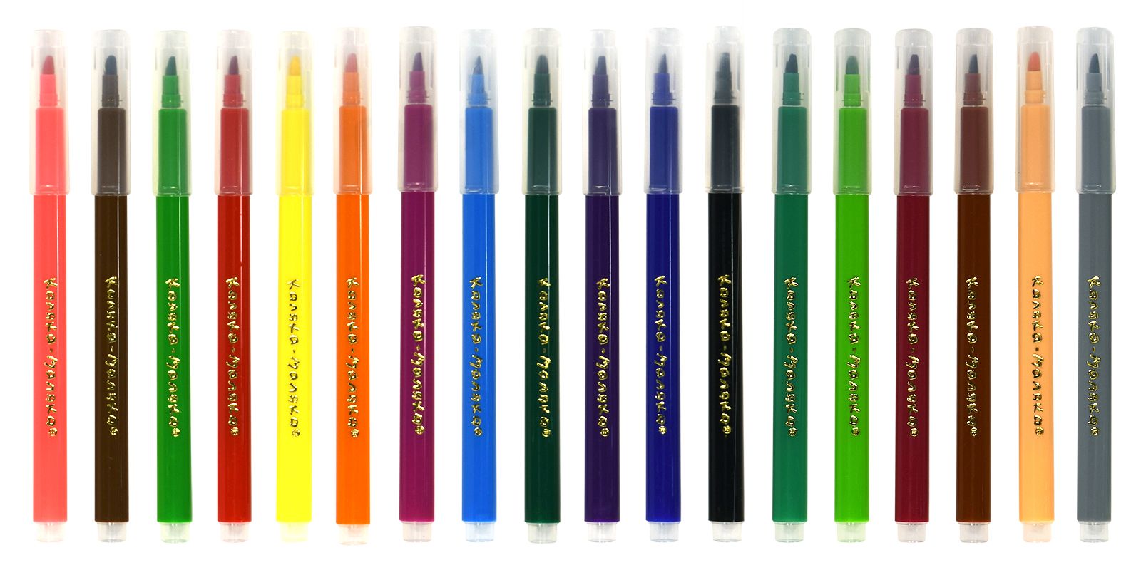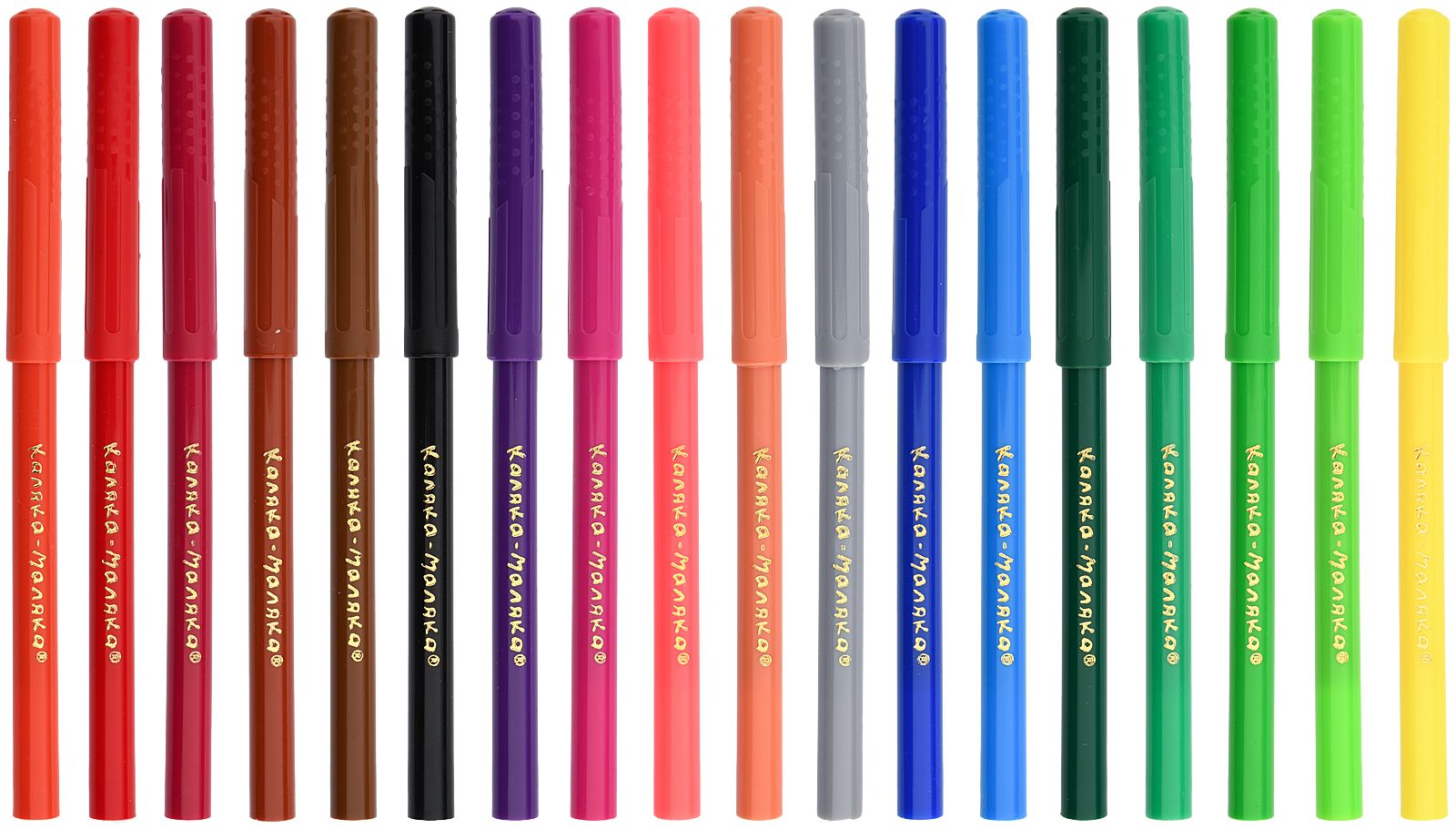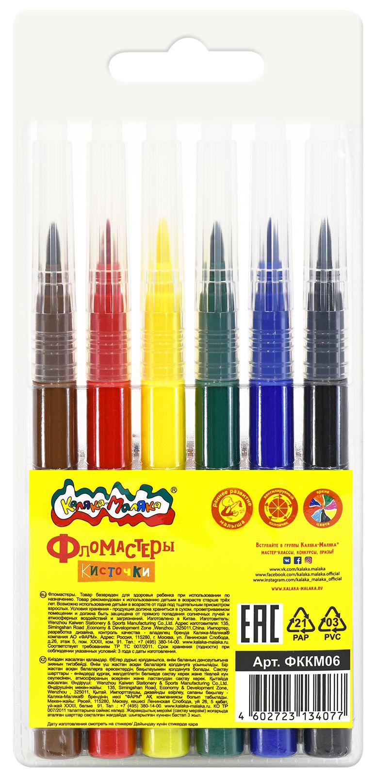 Количество цветов: 18 Наличие европодвеса: Да Форма наконечника: кистевидный Тип фломастеров: классические Вид товара: Фломастеры-кисточки Возраст: от 3 лет Мин. партия и варианты упаковок: 1 / 12 / 96 Фломастеры-кисточки Каляка-Маляка классические 18 цв. круглый корпус, легкосмываемые, блистер