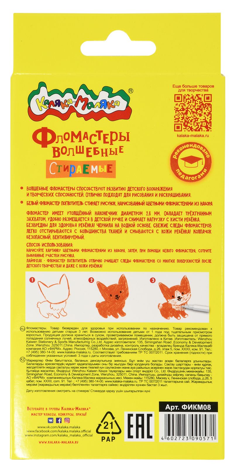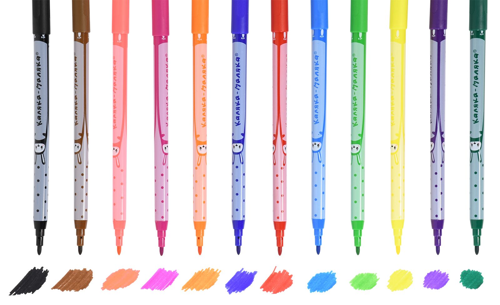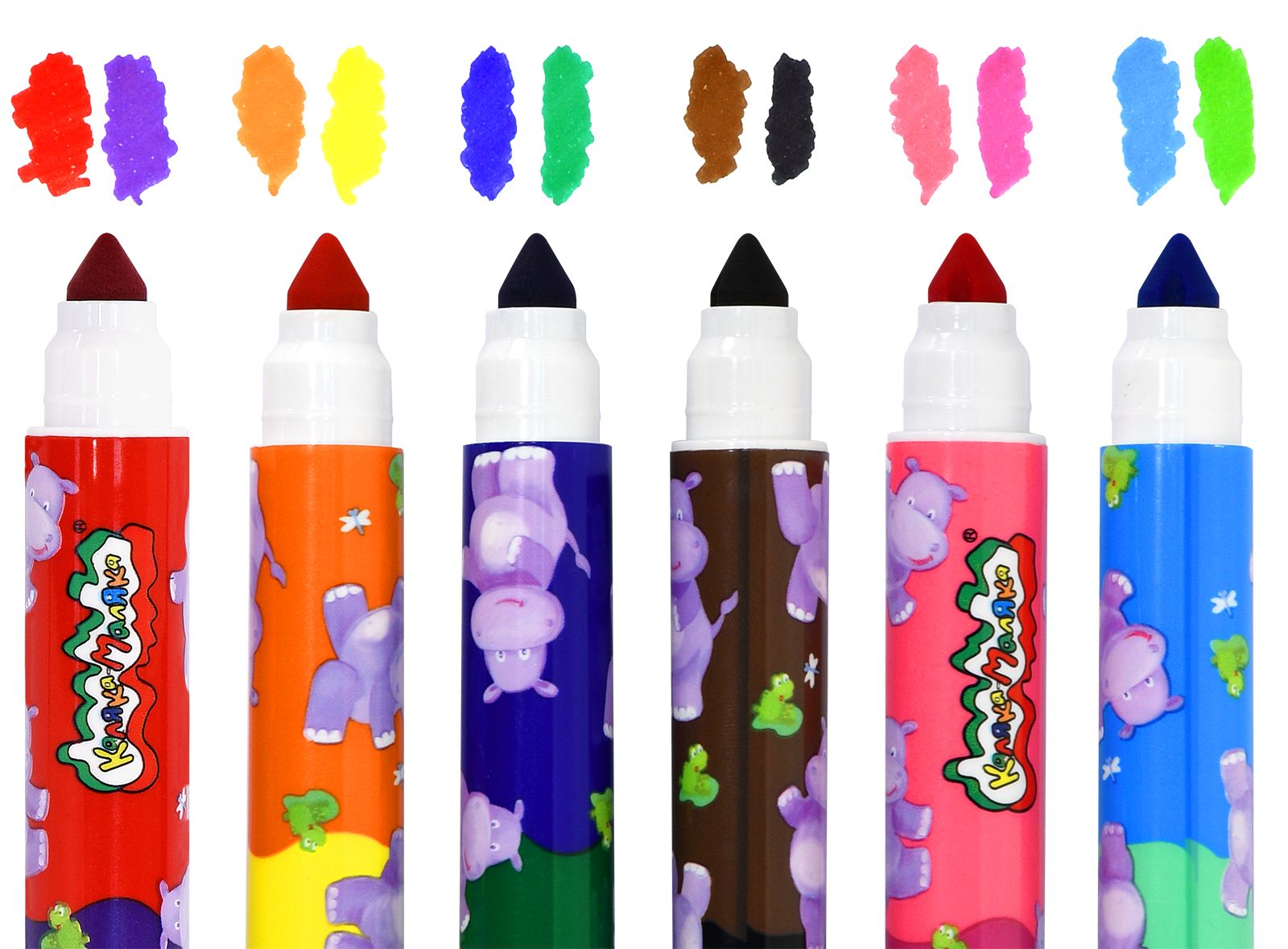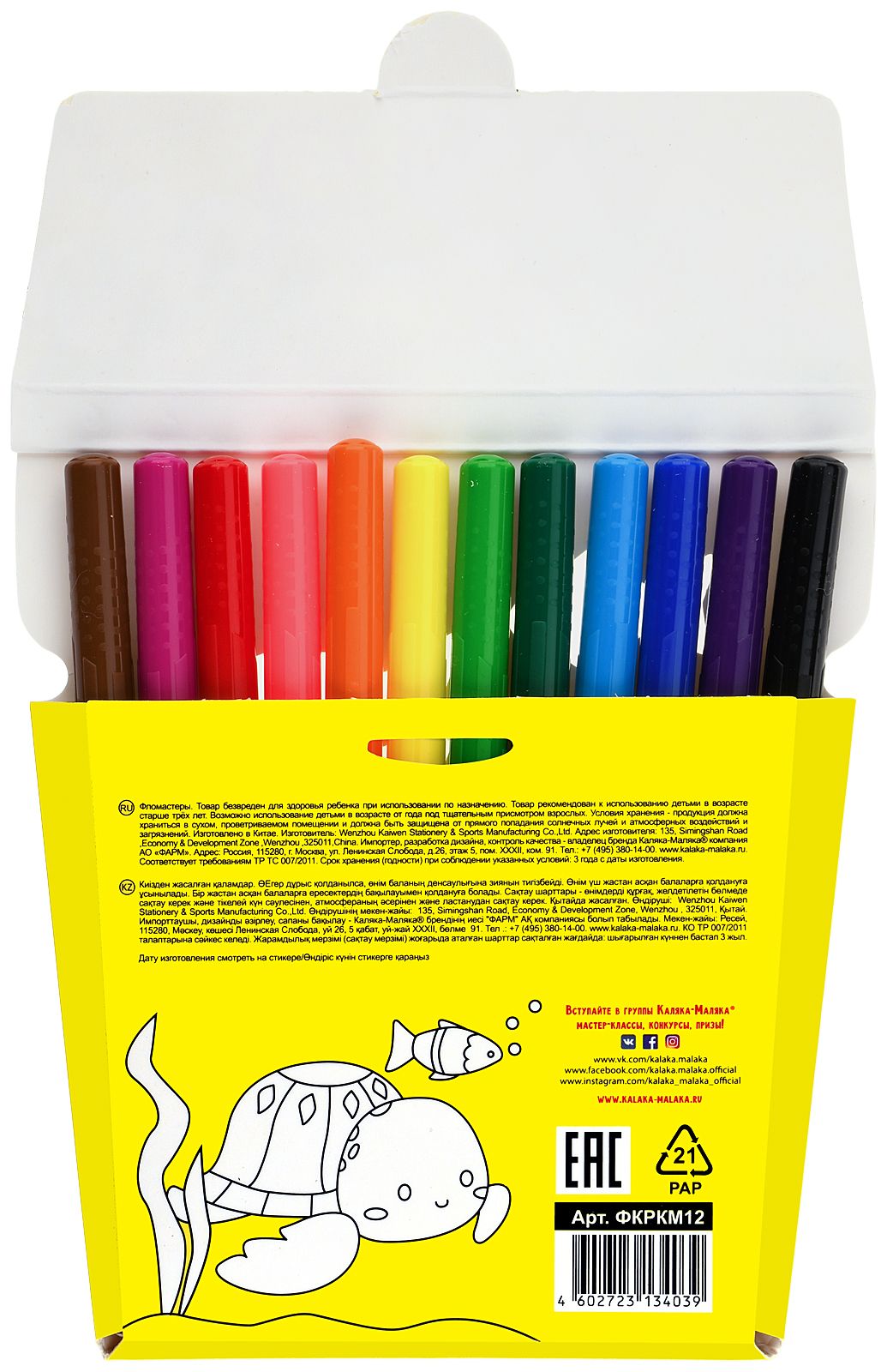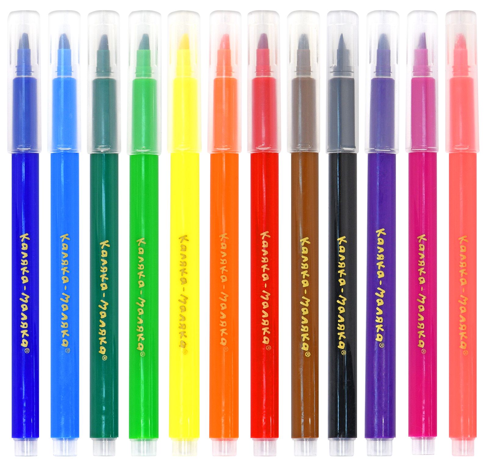 Количество цветов: 12 Наличие европодвеса: Да Форма наконечника: конический Тип фломастеров: классические Вид товара: Фломастеры Возраст: от 3 лет Мин. партия и варианты упаковок: 1 / 24 / 144 Фломастеры Каляка-Маляка классические 12 цв. круглый корпус, суперсмываемые, двухсторонние, принт на корпусе, картонная упаковка