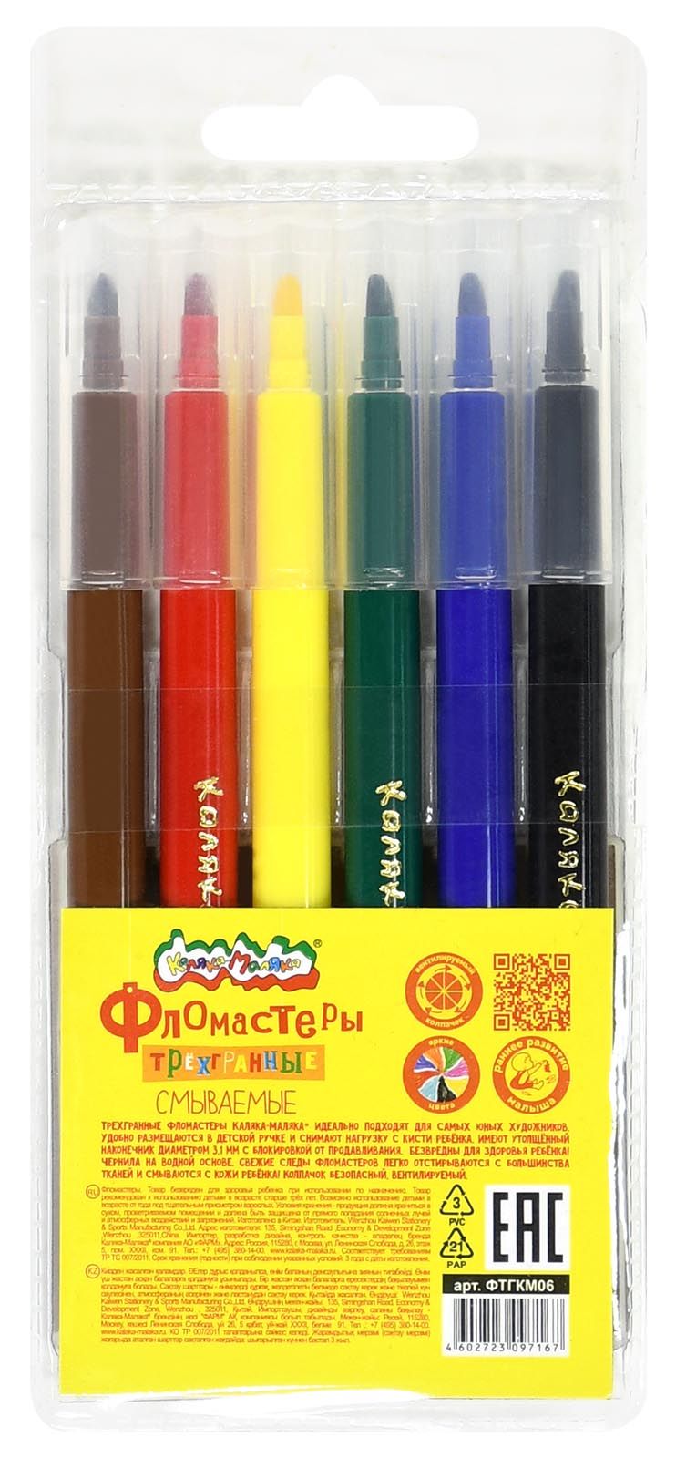 Количество цветов: 18 Наличие европодвеса: Да Форма наконечника: конический Тип фломастеров: классические Вид товара: Фломастеры Возраст: от 3 лет Мин. партия и варианты упаковок: 1 / 24 / 144 Фломастеры Каляка-Маляка ТРЕХГРАННЫЕ классические 18 цв. трехгранный корпус, легкосмываемые, блистер