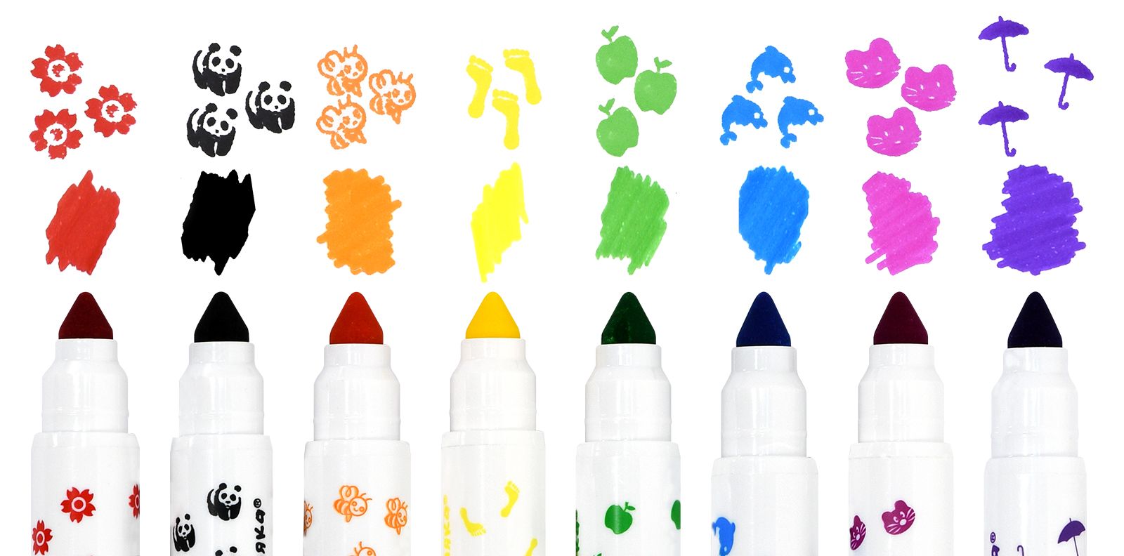 Количество цветов: 8 Наличие европодвеса: Да Форма наконечника: конический Тип фломастеров: со штампиками Вид товара: Фломастеры Возраст: от 3 лет Мин. партия и варианты упаковок: 1 / 24 / 192 -