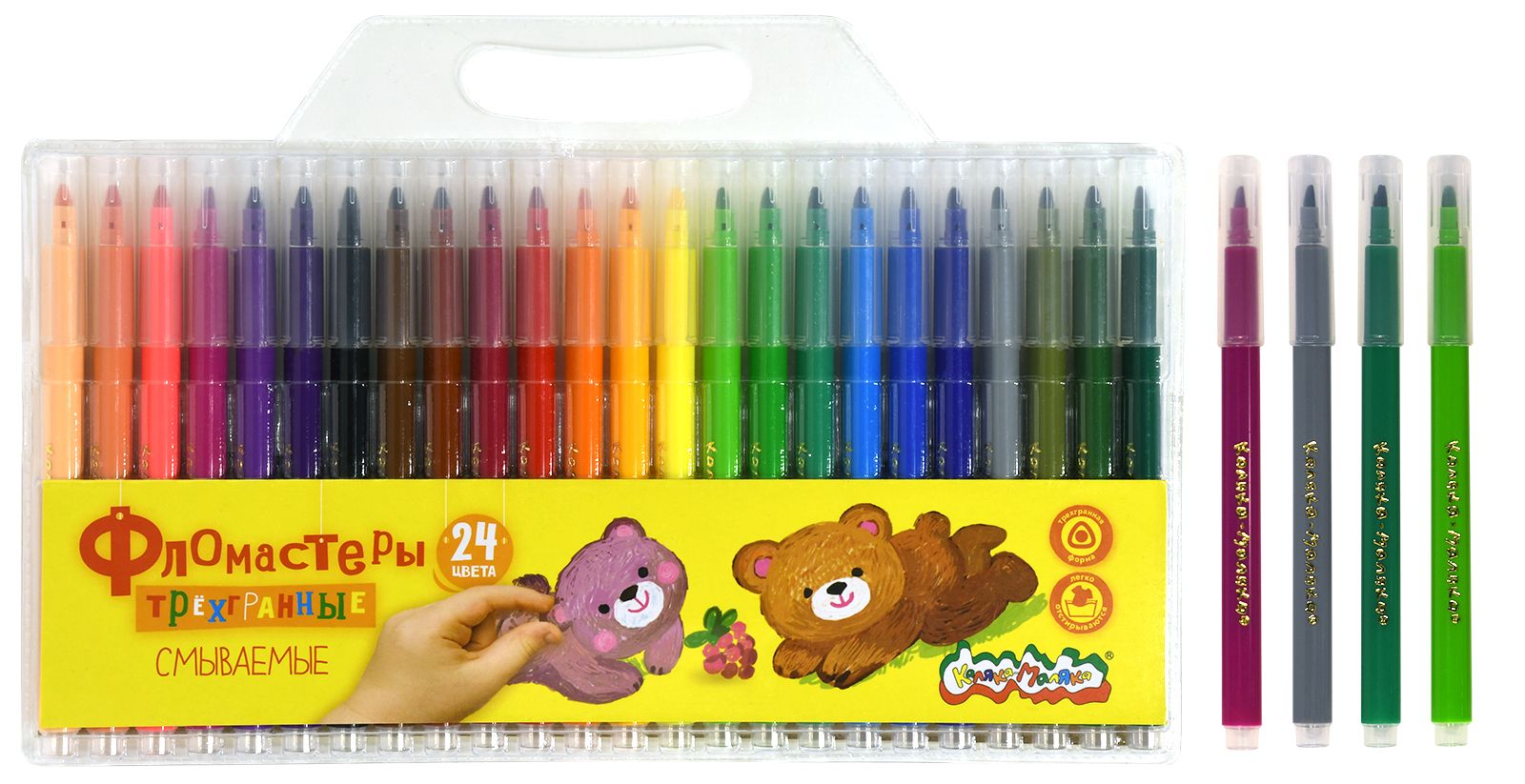 Количество цветов: 24 Наличие европодвеса: Да Форма наконечника: пулевидный Тип фломастеров: классические Вид товара: Фломастеры Возраст: от 3 лет Мин. партия и варианты упаковок: 1 / 12 / 96 Фломастеры Каляка-Маляка классические 24 цв. круглый корпус, легкосмываемые, блистер