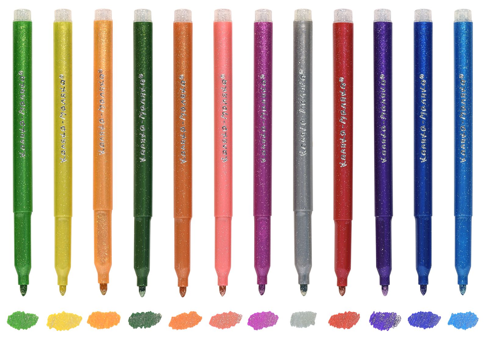 Количество цветов: 12 Наличие европодвеса: Да Форма наконечника: конический Тип фломастеров: с блёстками Вид товара: Фломастеры Возраст: от 3 лет Мин. партия и варианты упаковок: 1 / 24 / 192 Фломастеры Каляка-Маляка с блёстками 12 цв. круглый корпус, легкосмываемые, блистер