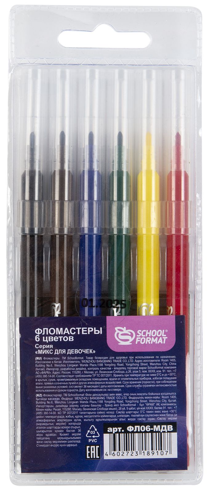 Количество цветов: 6 Наличие европодвеса: Да Форма наконечника: конический Тип фломастеров: классические Вид товара: Фломастеры Возраст: от 3 лет Мин. партия и варианты упаковок: 1 / 24 / 384 Фломастеры Schoolformat МИКС ДЛЯ ДЕВОЧЕК классические 6 цв. круглый корпус, смываемые, блистер